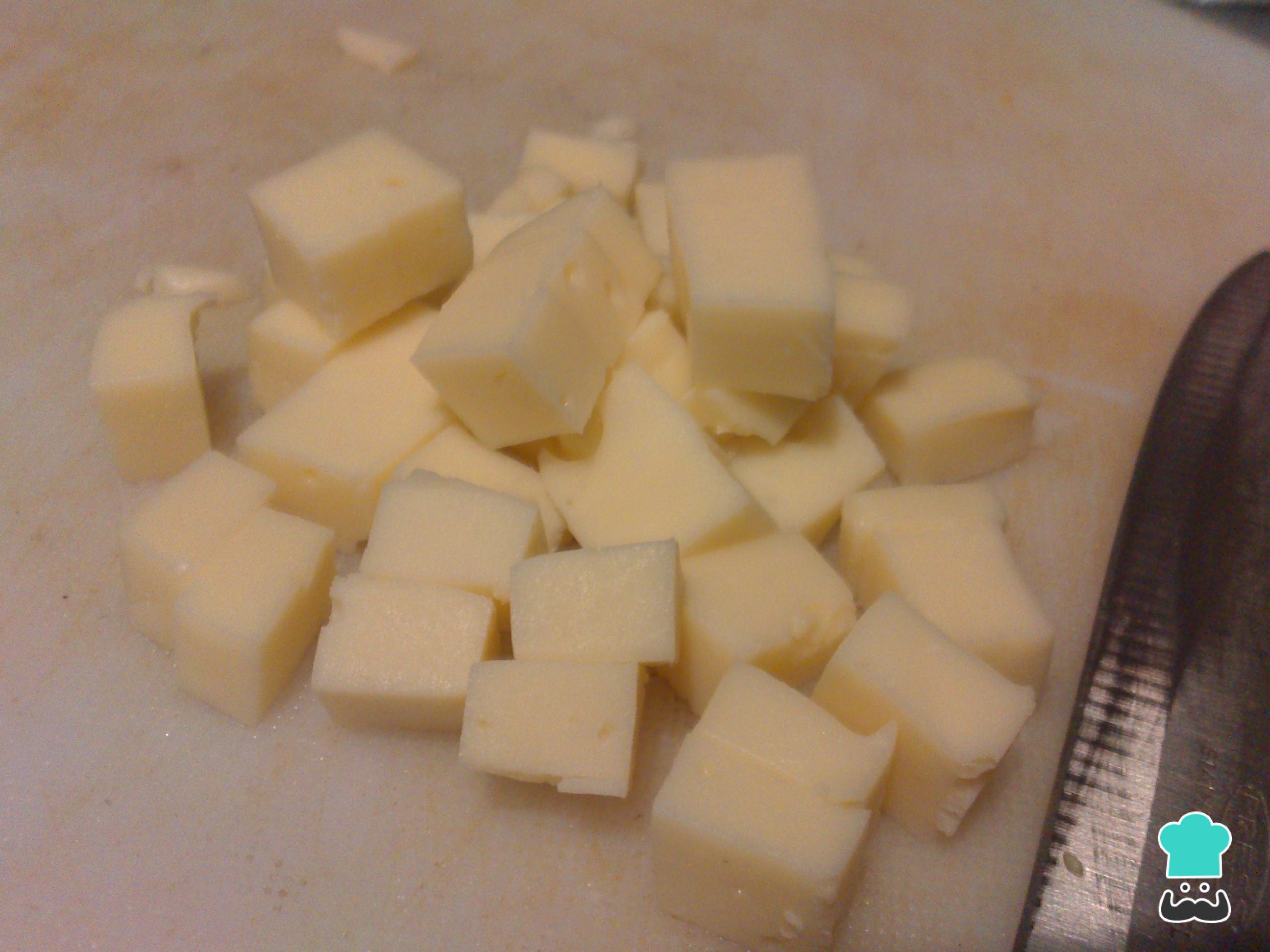 Enquanto isso, corte o queijo em cubos.