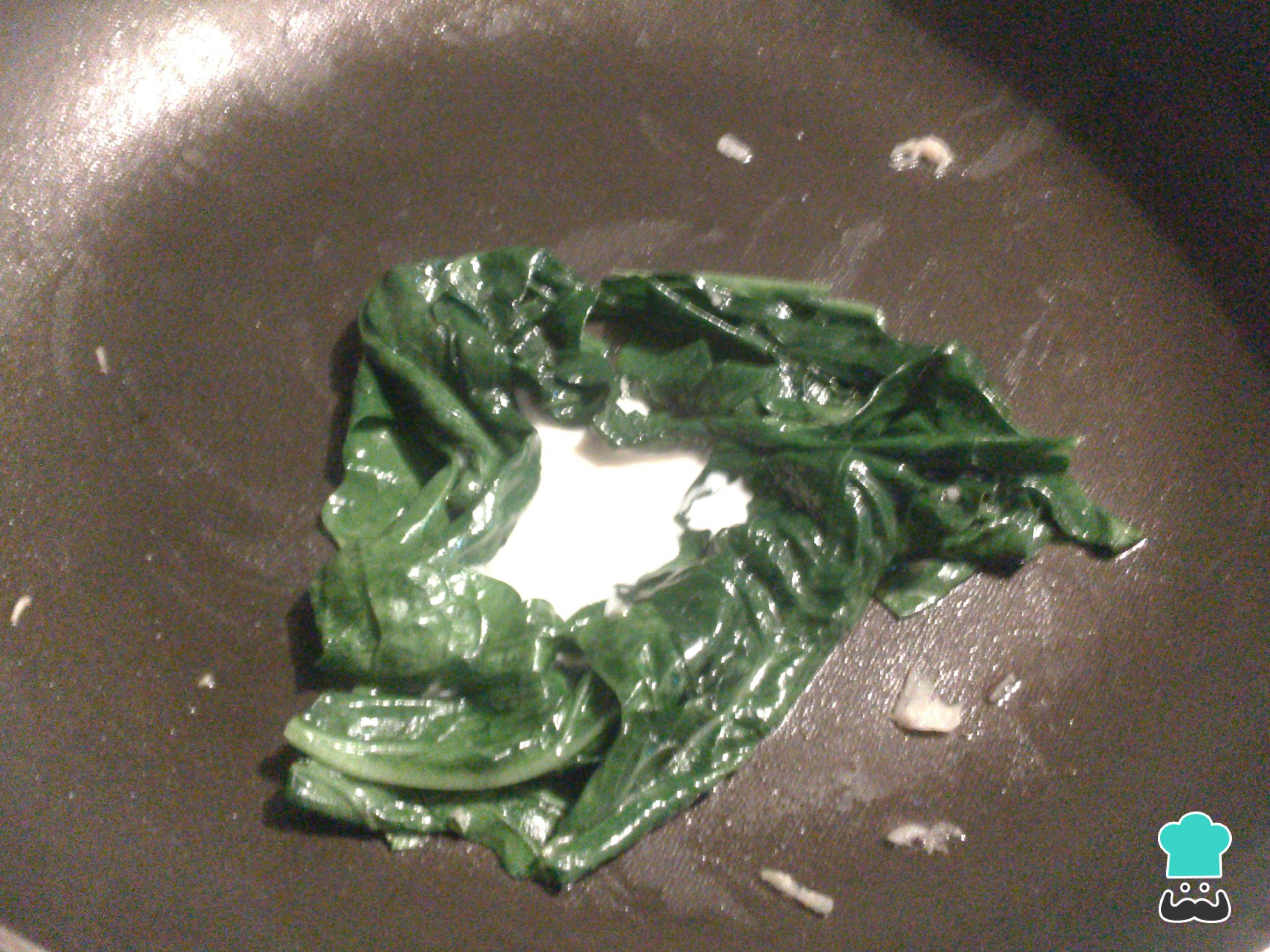 Leve ao fogo médio uma frigideira com o azeite e salteie os espinafres. Quando estiverem murchos, desligue o fogo, adicione o creme de leite e tempere com sal e pimenta a gosto.
