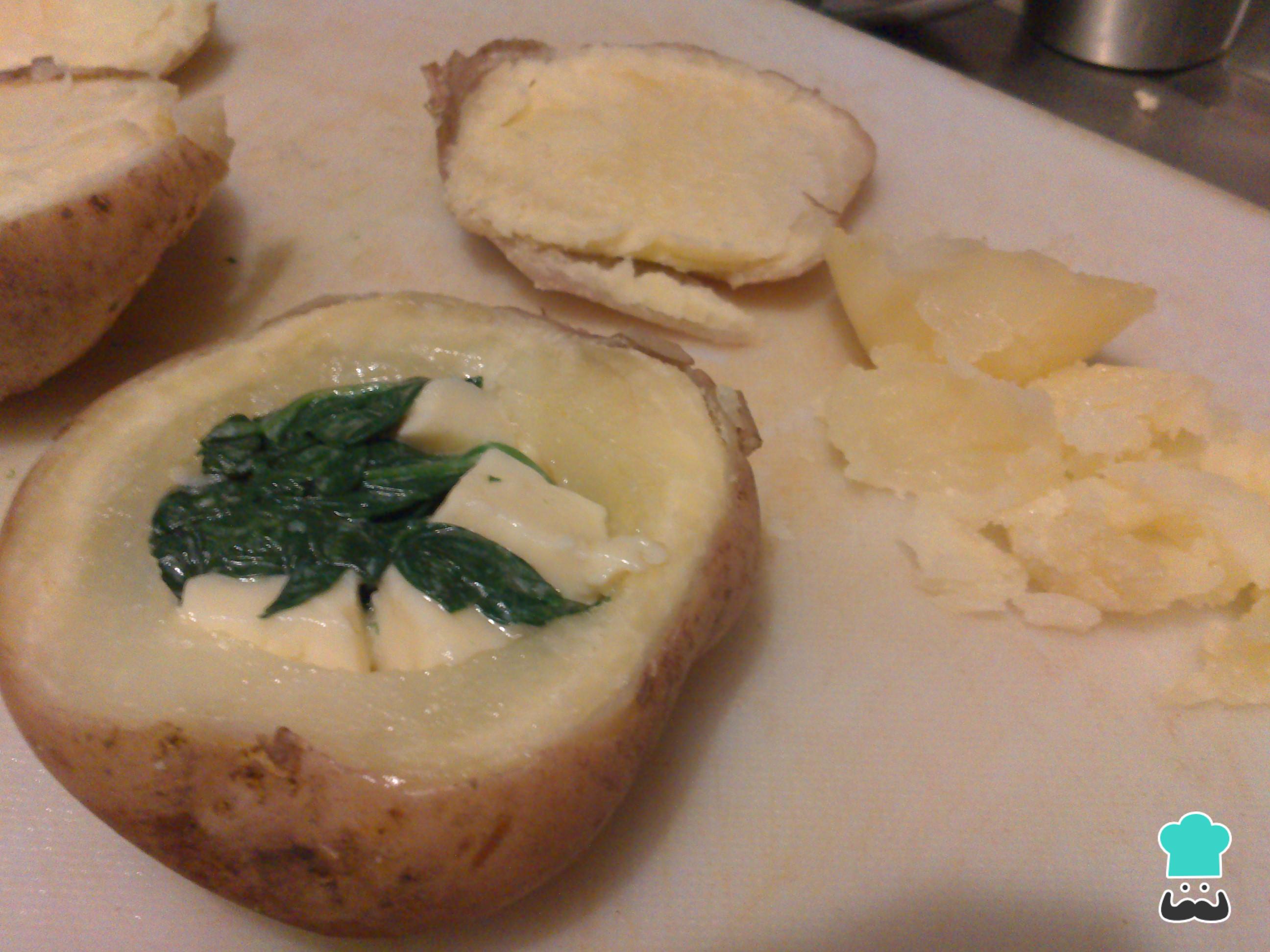 Como fazer Batata recheada com queijo e espinafre: