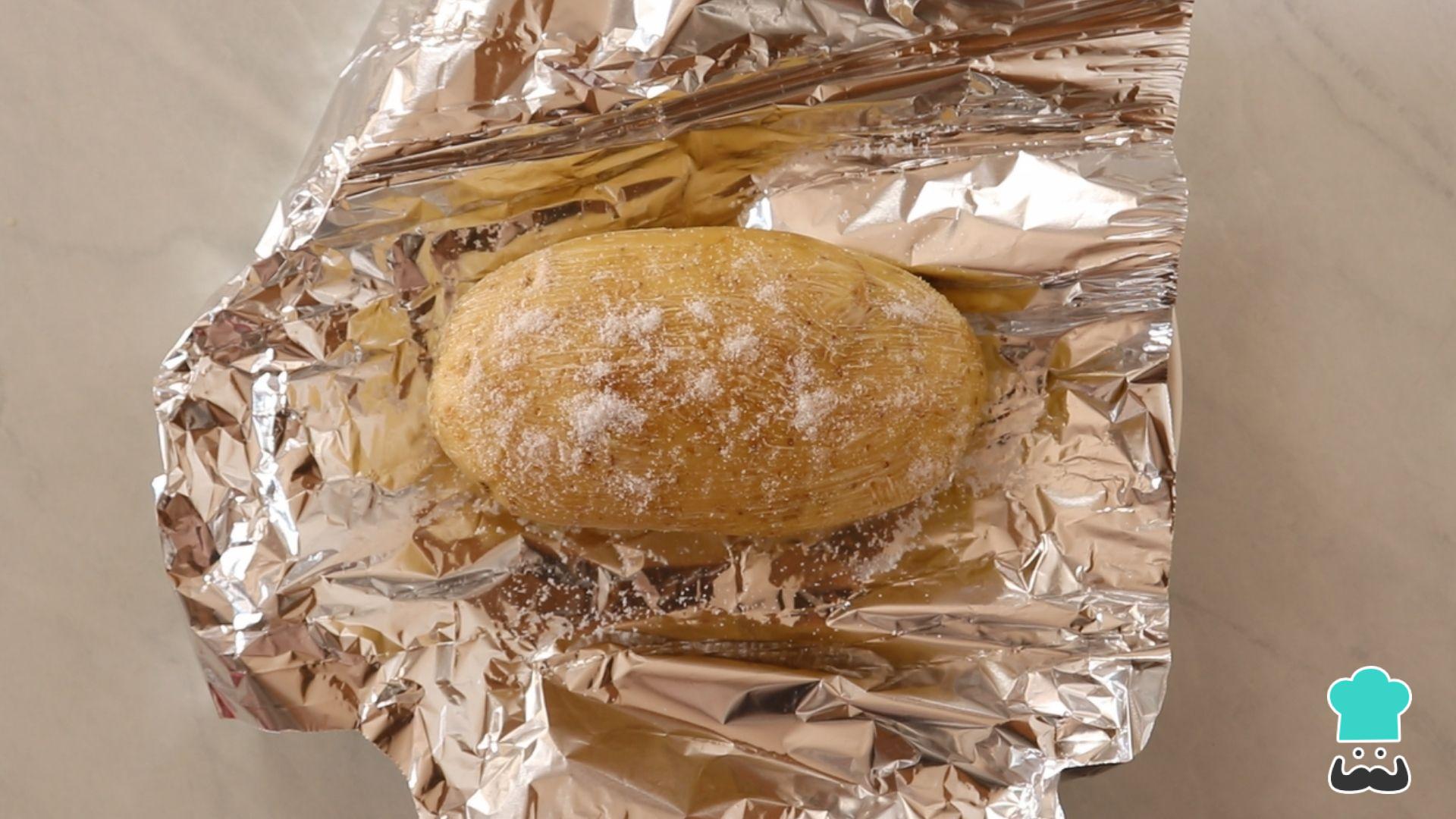 Dica: para conferir se a batata está pronta, abra o papel alumínio com muito cuidado (ele vai libertar vapor bem quente) e pique a batata com um garfo: ela deverá estar bem macia.