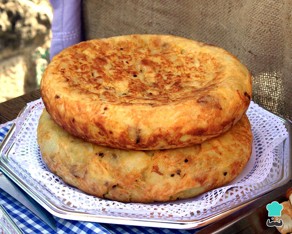 Esquente a manteiga, o óleo ou o azeite numa frigideira e coloque metade da batata. Coloque o recheio ao centro e cubra com a restante batata, pressionando para ficar compacto.