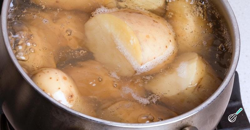 O primeiro passo do preparo de sua batata rosti é cozer as batatas inteiras em água sem descascar antes.