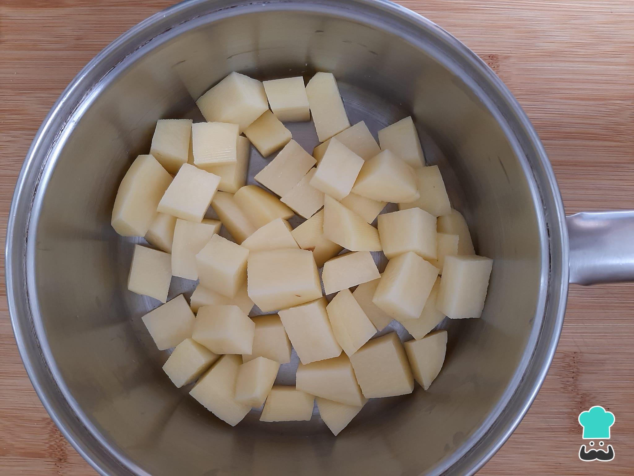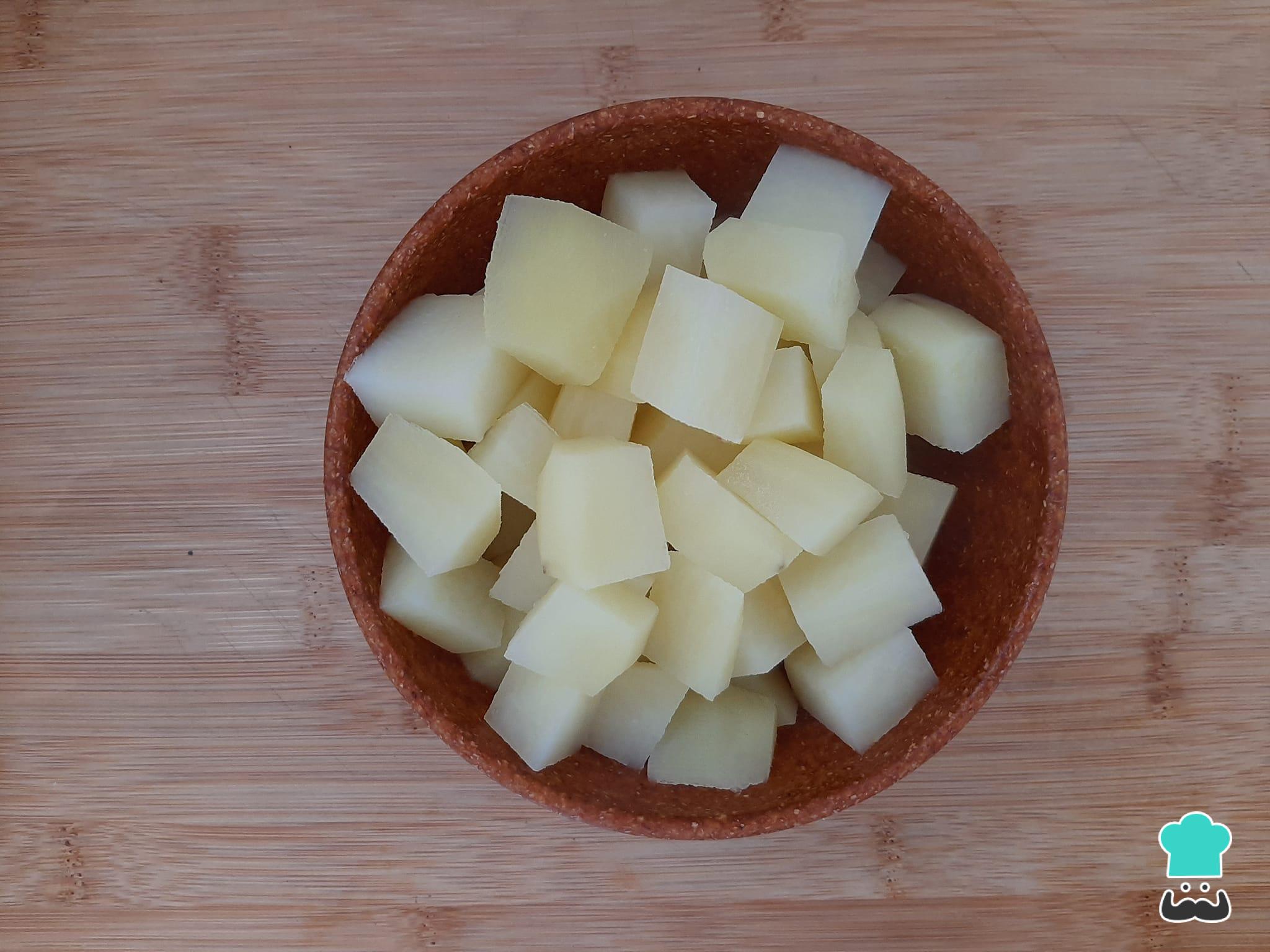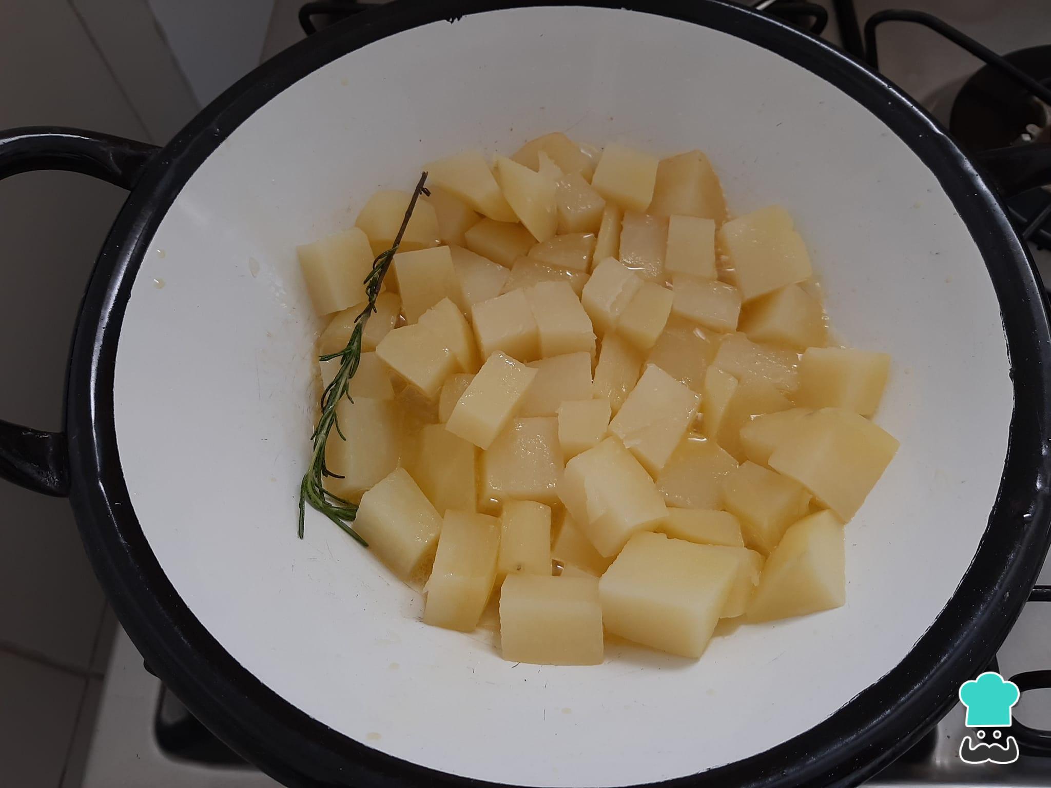 Dica: As batatas cozinham rapidamente quando cortadas em cubinhos, portanto fique de olho para não passar do ponto.