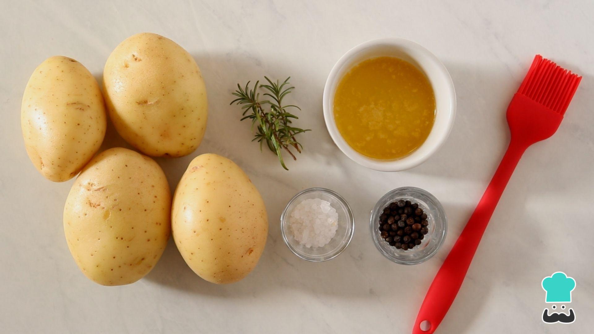 Comece separando os ingredientes e lavando bem a batata, de preferência com uma escovinha para legumes. Nessa receita a batata vai com casca e tudo, então é fundamental que ela esteja bem higienizada.