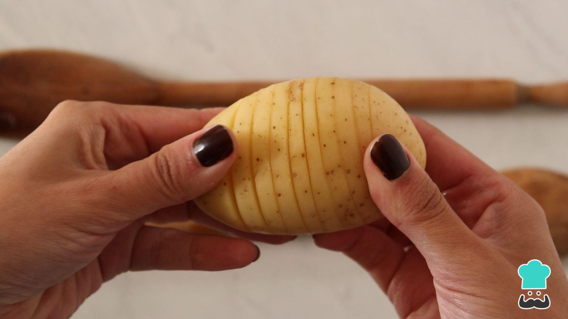 As batatas ficarão assim como na foto, com efeito de batata sanfonada!