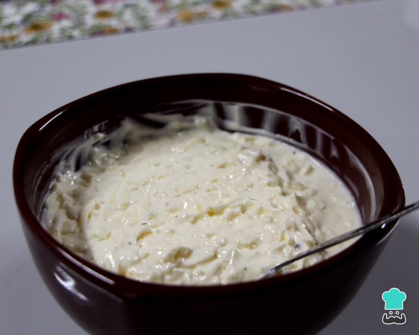 Enquanto as batatas estiverem cozinhando, em um recipiente você deve misturar a maionese, o queijo ralado e pimenta do reino e sal a gosto.