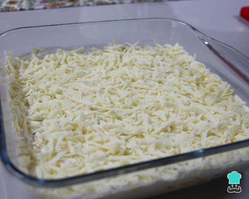 Por fim, coloque um pouco de queijo ralado por cima e leve ao forno até gratinar.