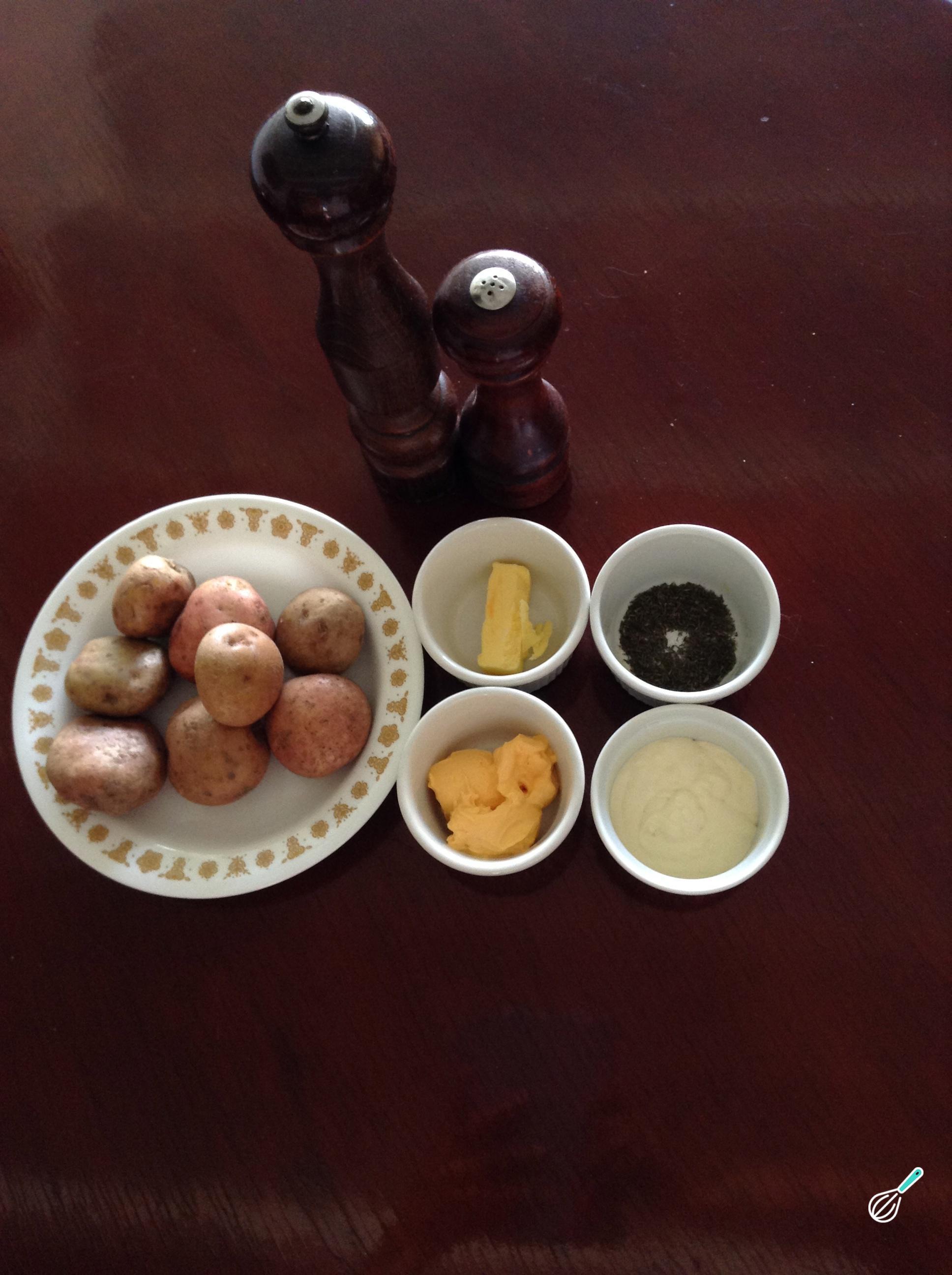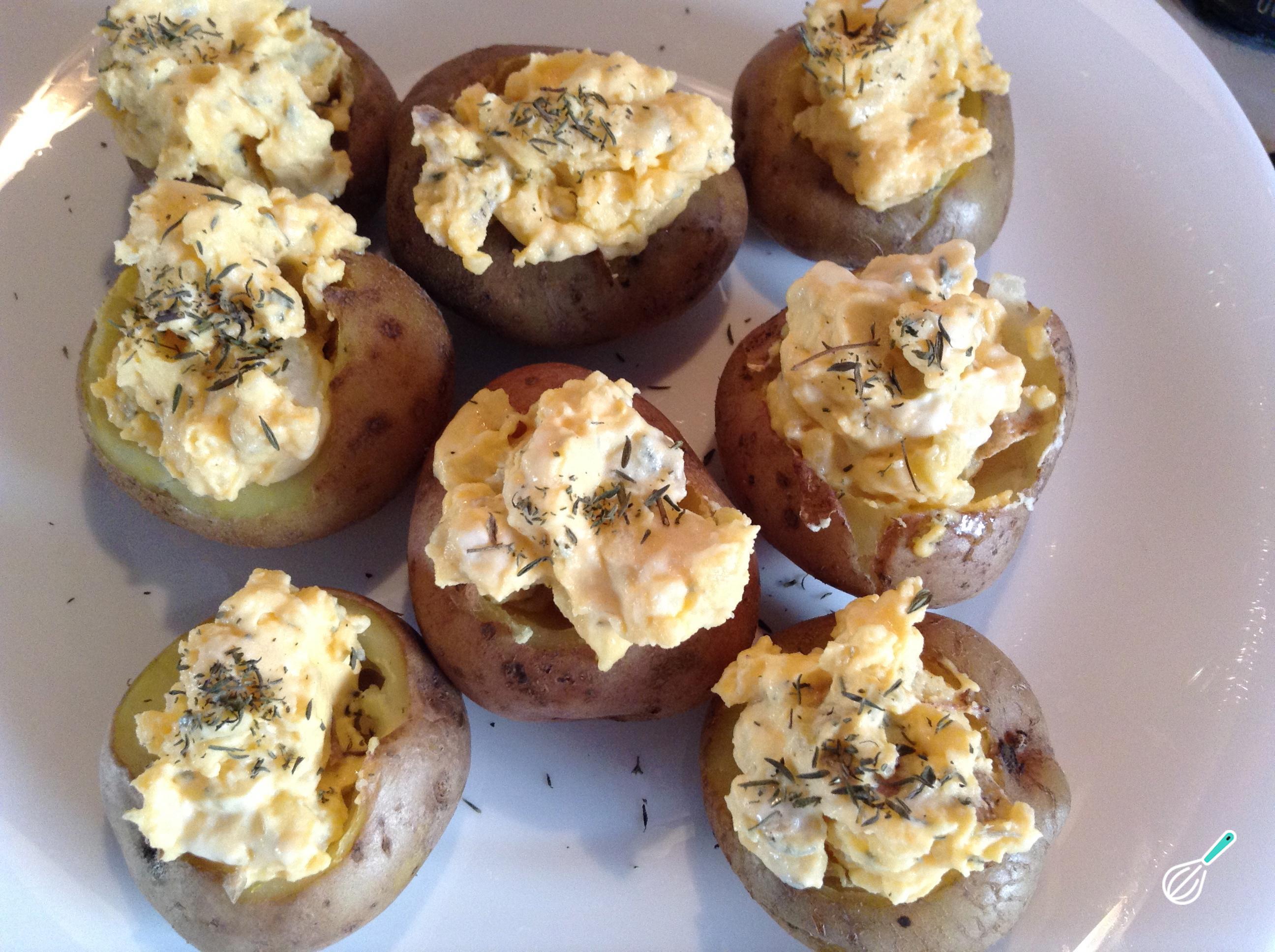 Enfeite com um pouco de tomilho seco em cima de cada uma das batatas. Serva e bom proveito!