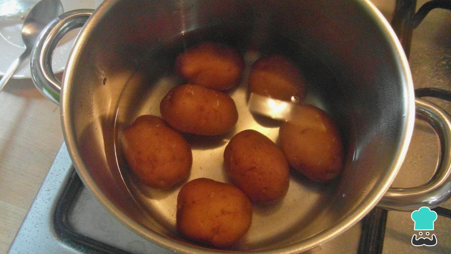 Cubra as batatas com água, adicione um pouco de sal e cozinhe em fogo médio por cerca de 20 minutos, ou até que estejam macias mas não desfazendo.