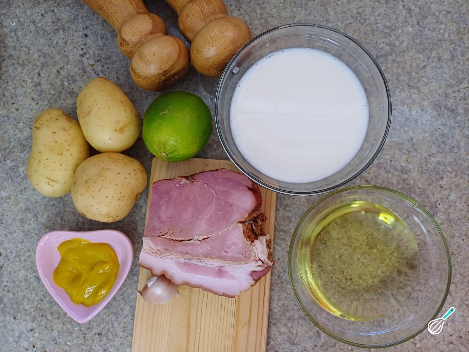 Separe os ingredientes necessários para o preparo dessa receita de batatonese com bacon.