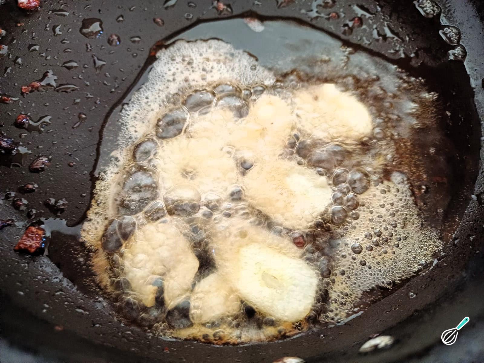 Dica: Não deixe queimar o alho, pois o sabor ficará amargo.