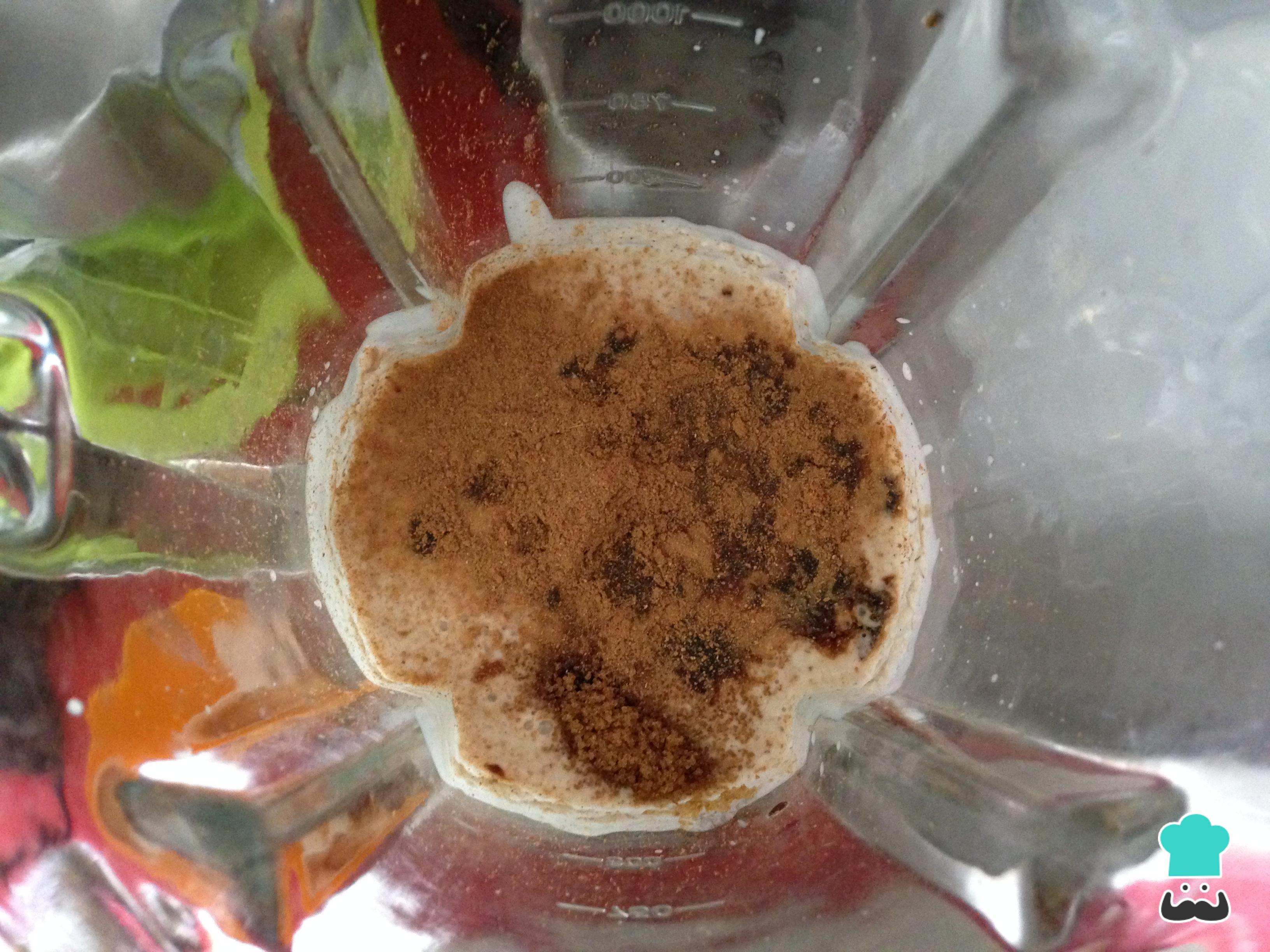 Adicione a canela em pó e algumas gotas de essência de baunilha, dois ingredientes que dão um sabor gostoso a esta receita.