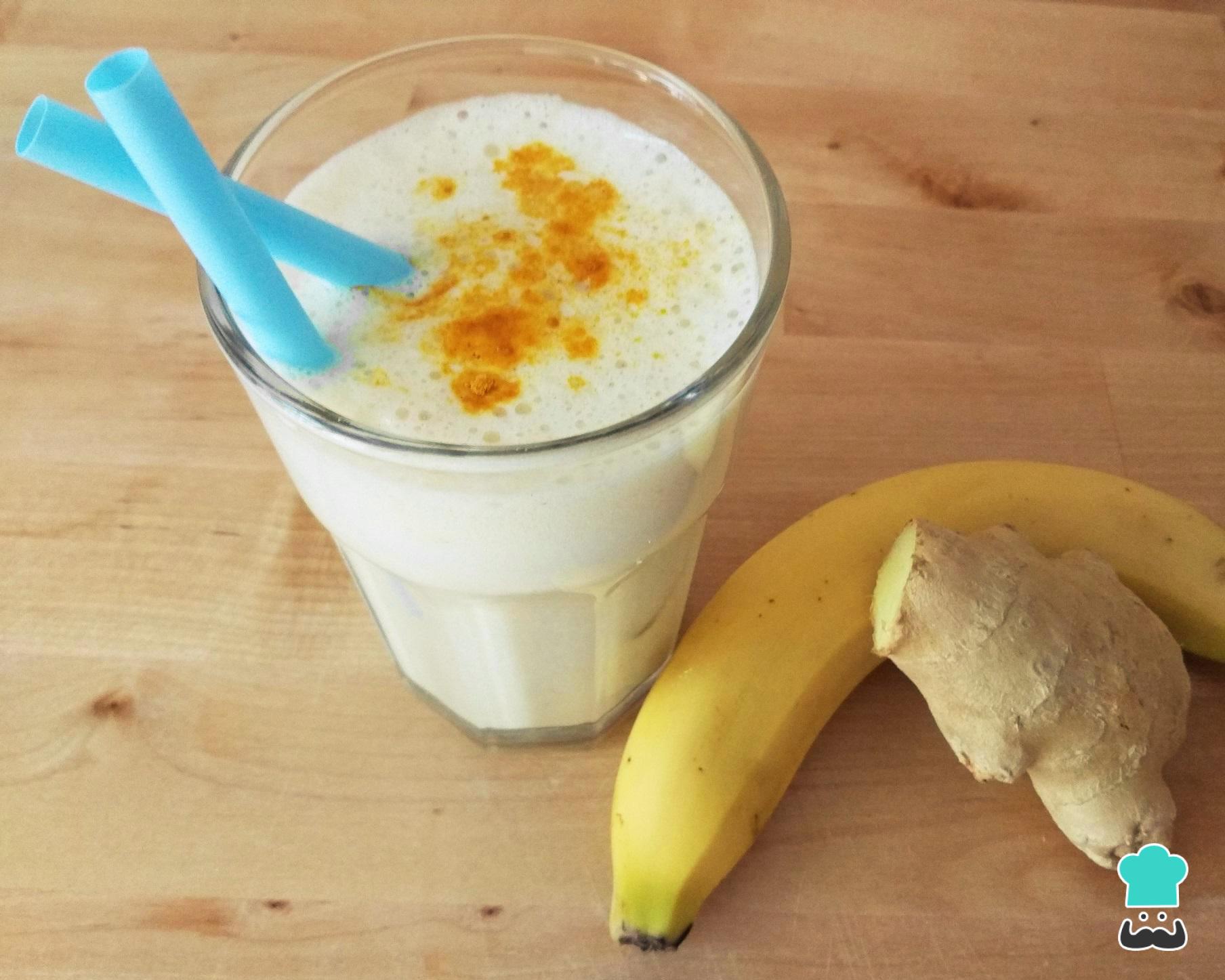 Este shake de banana com gengibre, cúrcuma/açafrão e canela é uma bebida funcional muito especial que vale a pena conhecer! Mas afinal, banana com gengibre é bom para quê? Os ingredientes usados no preparo desta vitamina de banana fit favorecerem o bom funcionamento intestinal, acalmam problemas de estômago, reforçam o sistema imunológico, aceleram o metabolismo favorecendo a queima de gordura mais facilmente e, com isso, ajudam a emagrecer de forma natural.