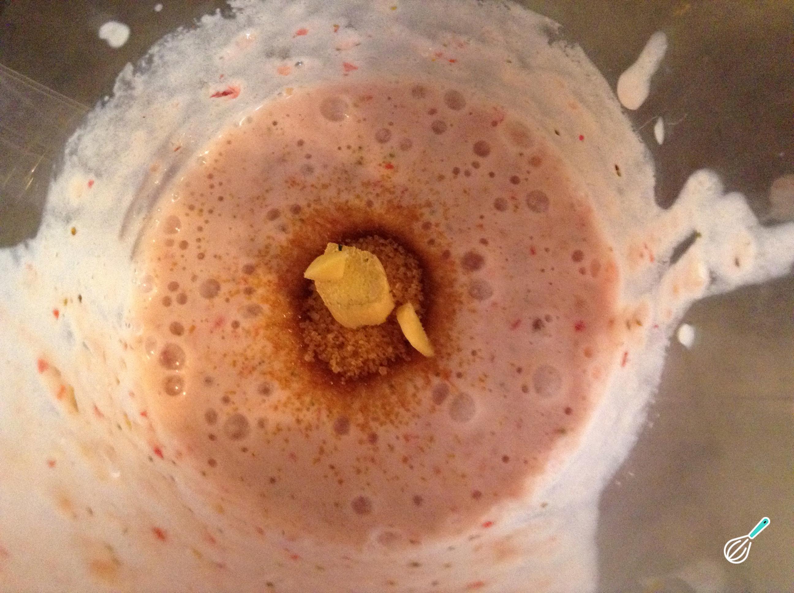 Adicione o açúcar mascavo e um pouco de gengibre (para lhe dar um sabor extra e um toque secreto ao batido).