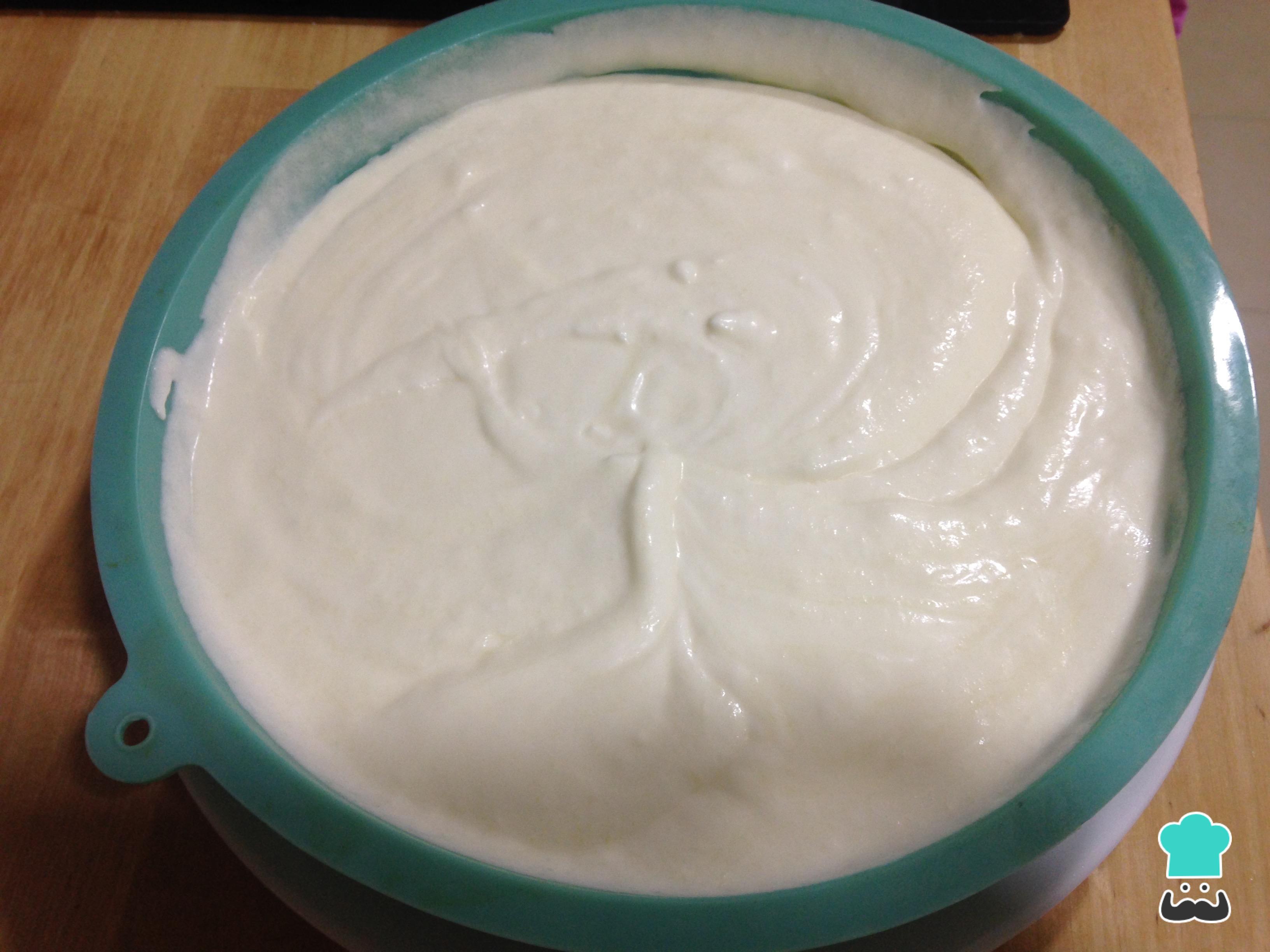 Coloque o bavaroise de abacaxi em uma forma redonda de silicone ou de inox, untada levemente. Reserve na geladeira por um mínimo de 2 horas.