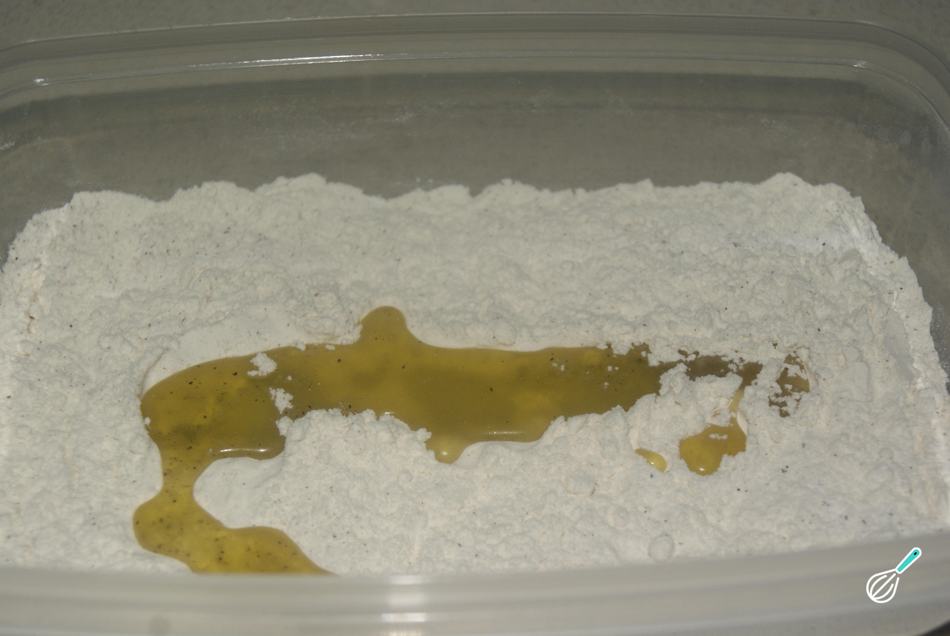 Incorpore uma fio de azeite de oliva na mistura.