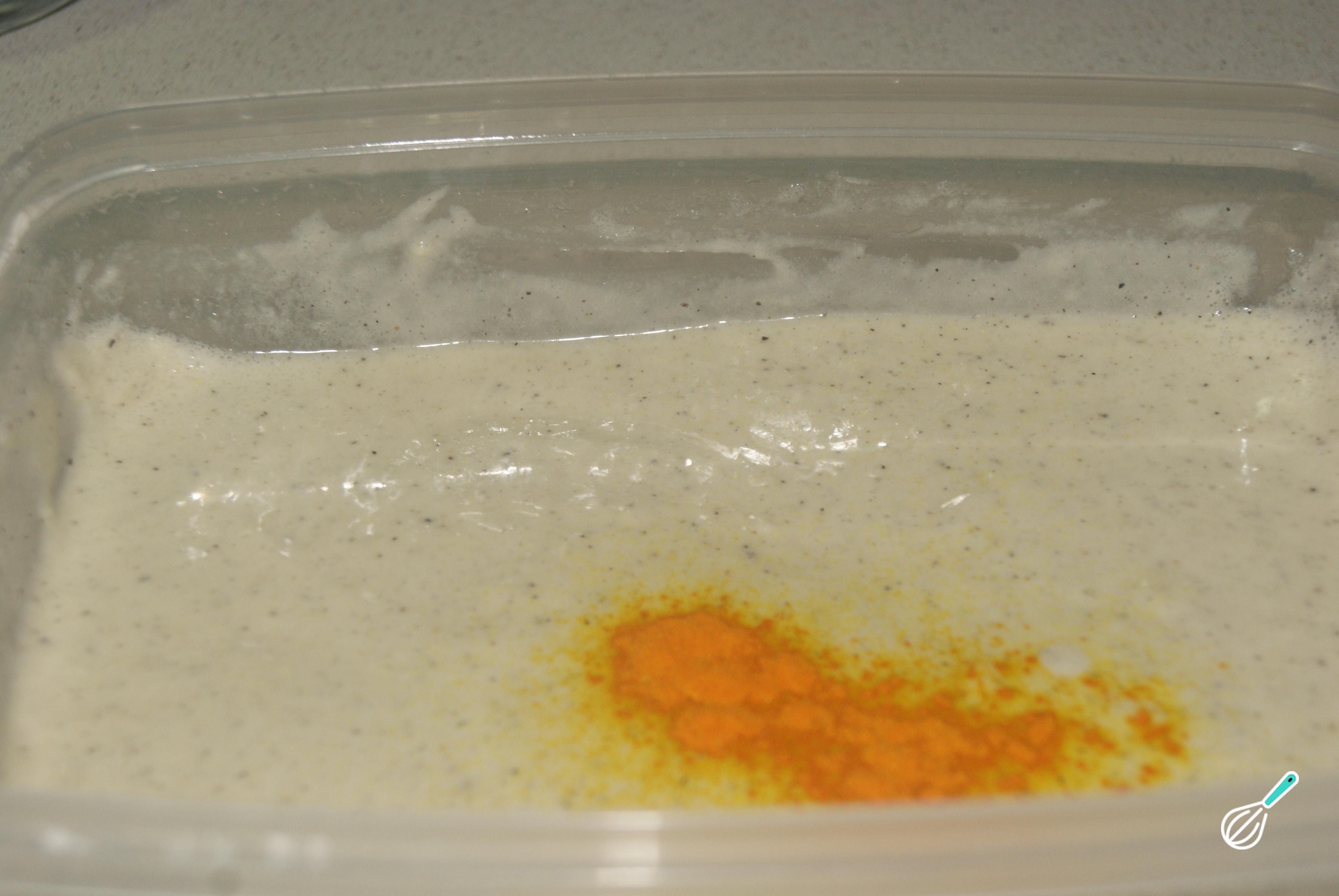 Finalmente, junte uma pitada de corante e misture bem.