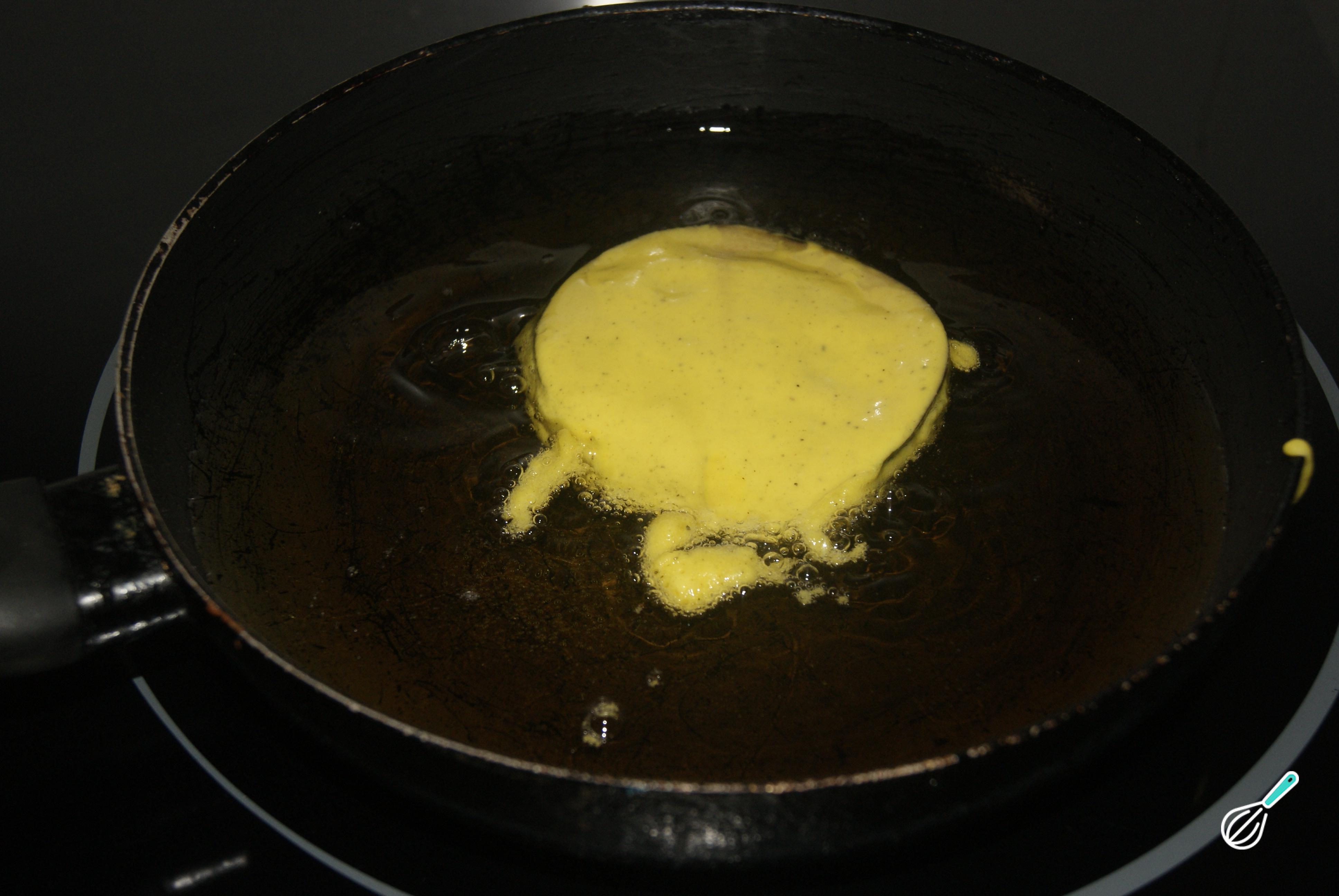 Passe a berinjela pela massa que anteriormente tinha preparado.