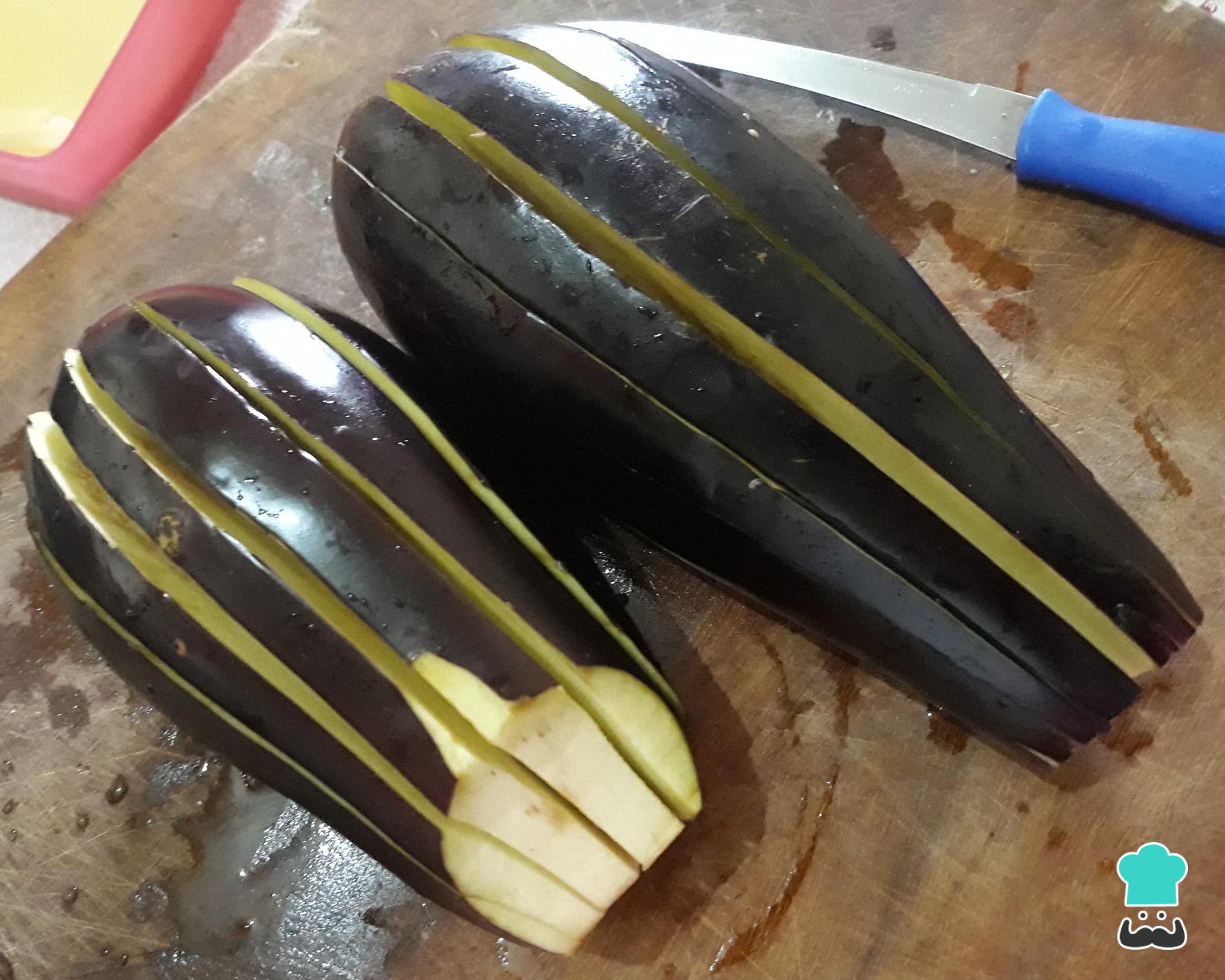 Dica: Corte a berinjela desse jeito para conseguir um efeito 'folheado' e colocar o recheio entre as fatias.