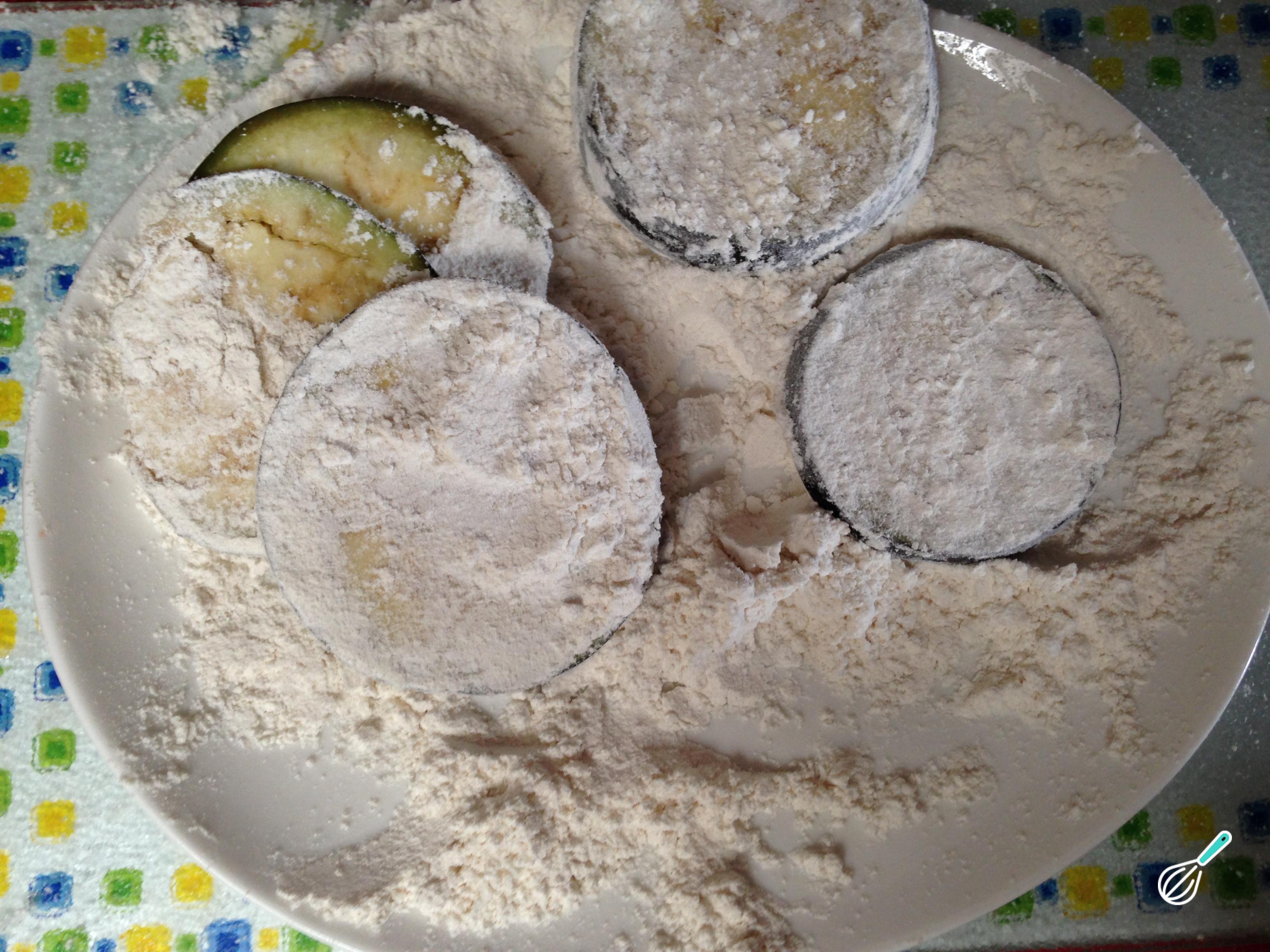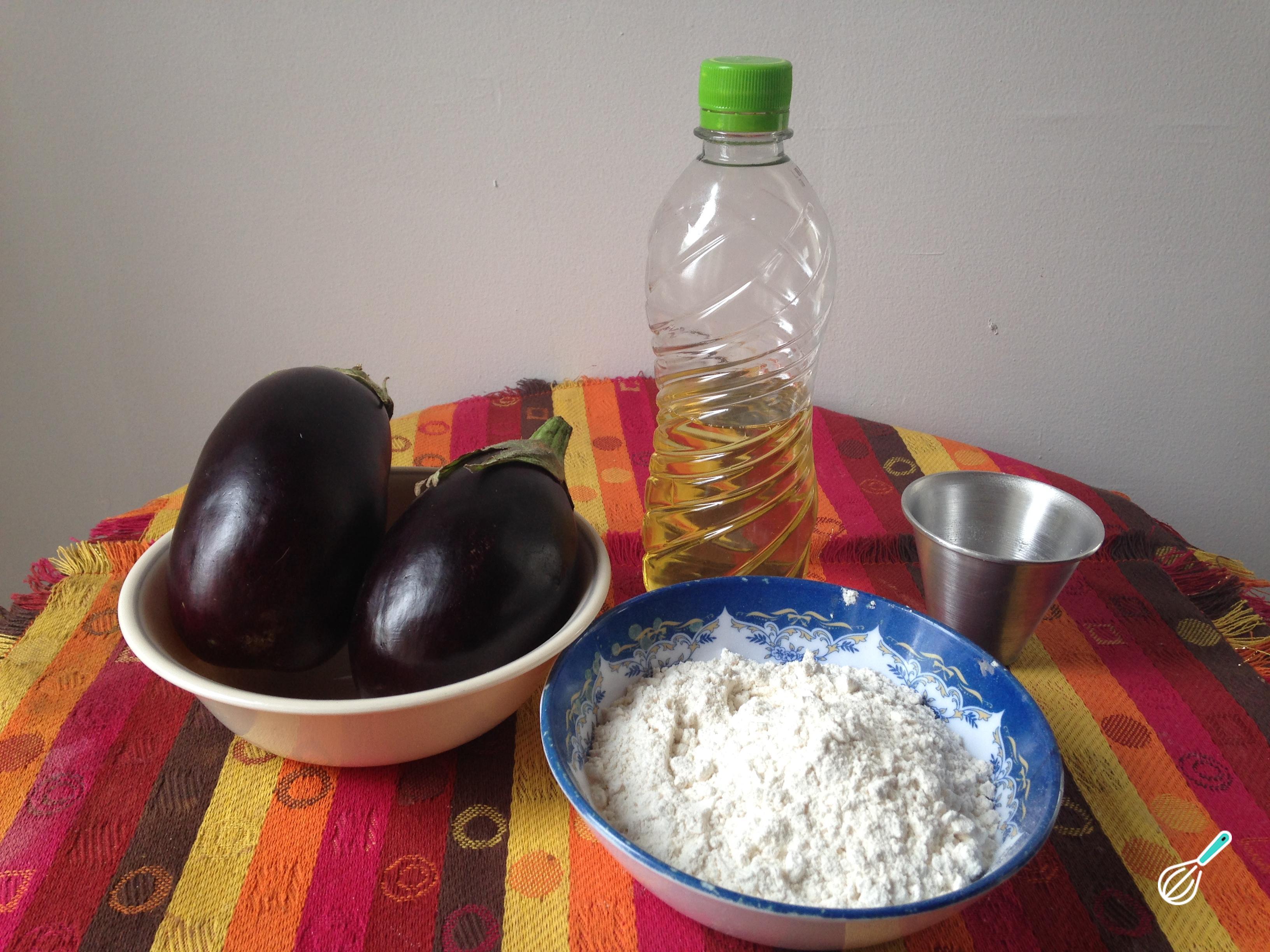 Lave as berinjelas e seque-as muito bem. Envolva-as na farinha e frite em óleo quente até ficarem crocantes.