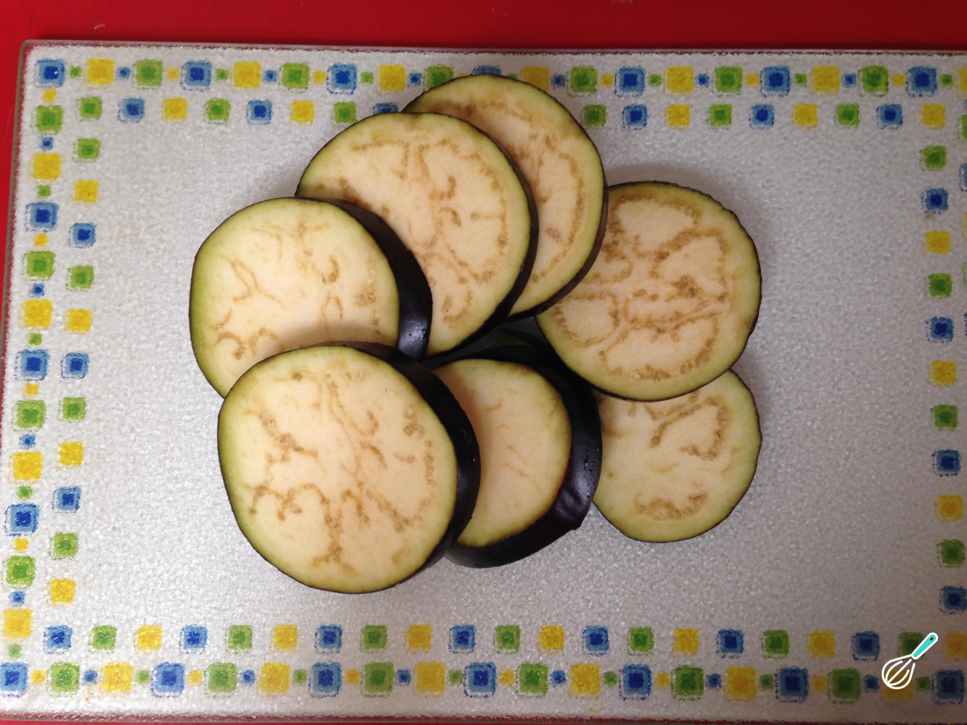 Corte as berinjelas em fatias.