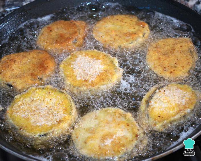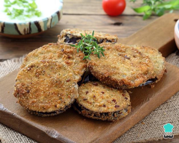 Dica: Para que a berinjela fique mais crocante reserve-a por 30 minutos na geladeira após empanar com todos os ingredientes. Só então esquente o óleo e coloque fritando. Você saberá que o óleo está na temperatura certa quando polvilhar um pouco de farinha de rosca nele e a farinha começar borbulhando.