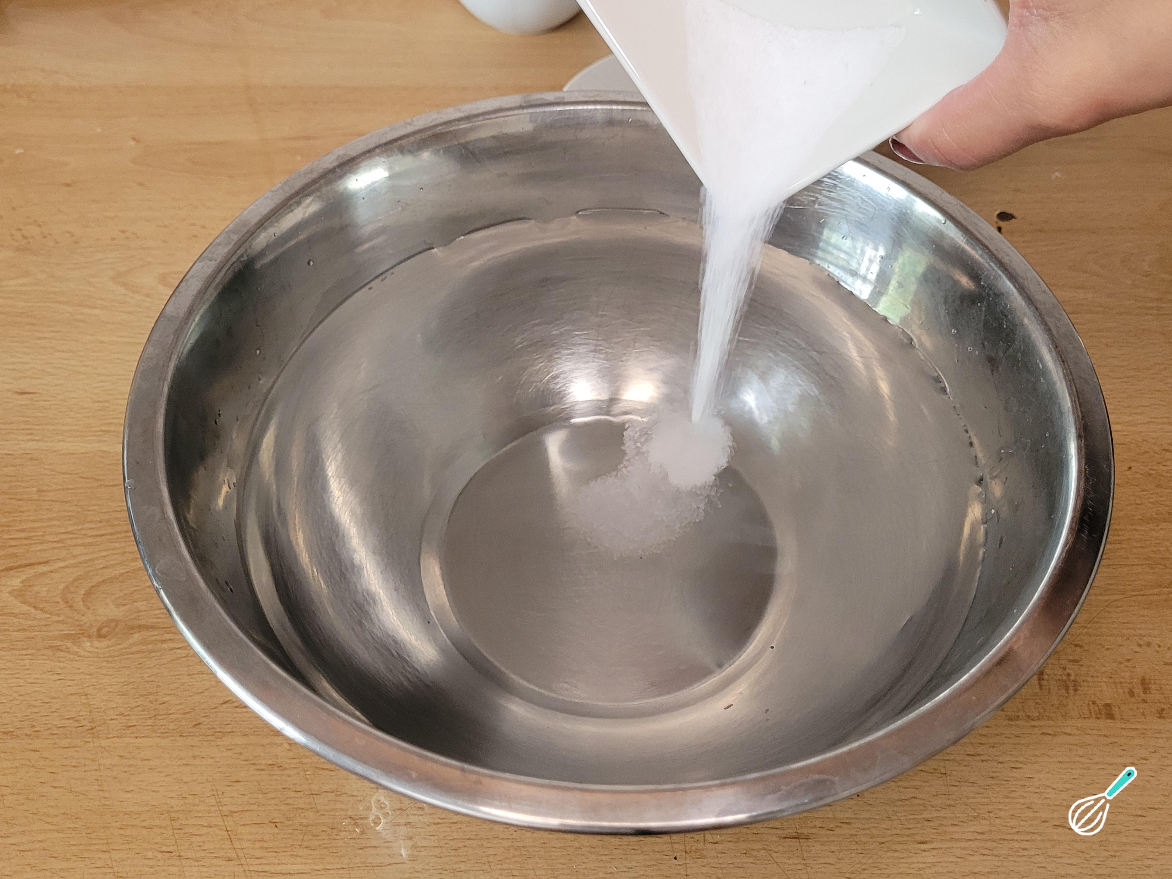 Coloque água em uma tigela grande e adicione o sal e misture bem para dissolver.