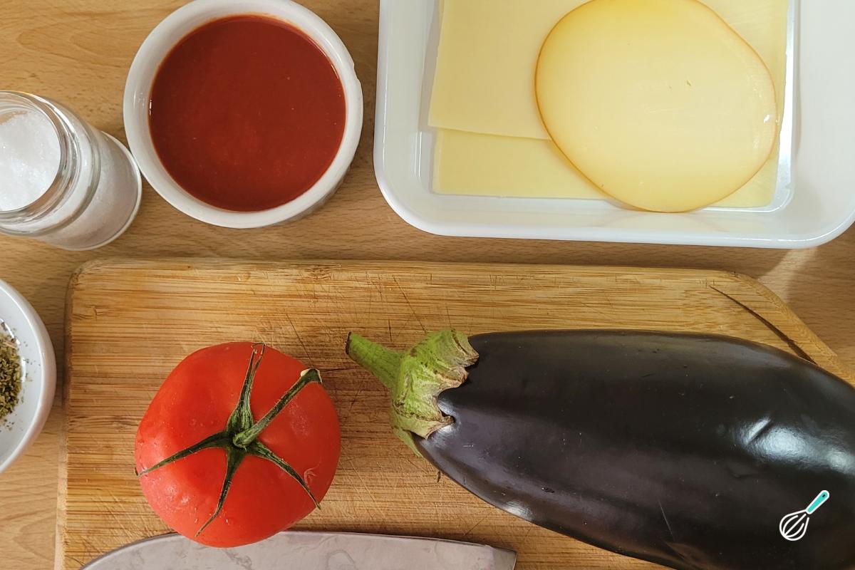 Separe os ingredientes para fazer sua berinjela na airfryer com queijo.