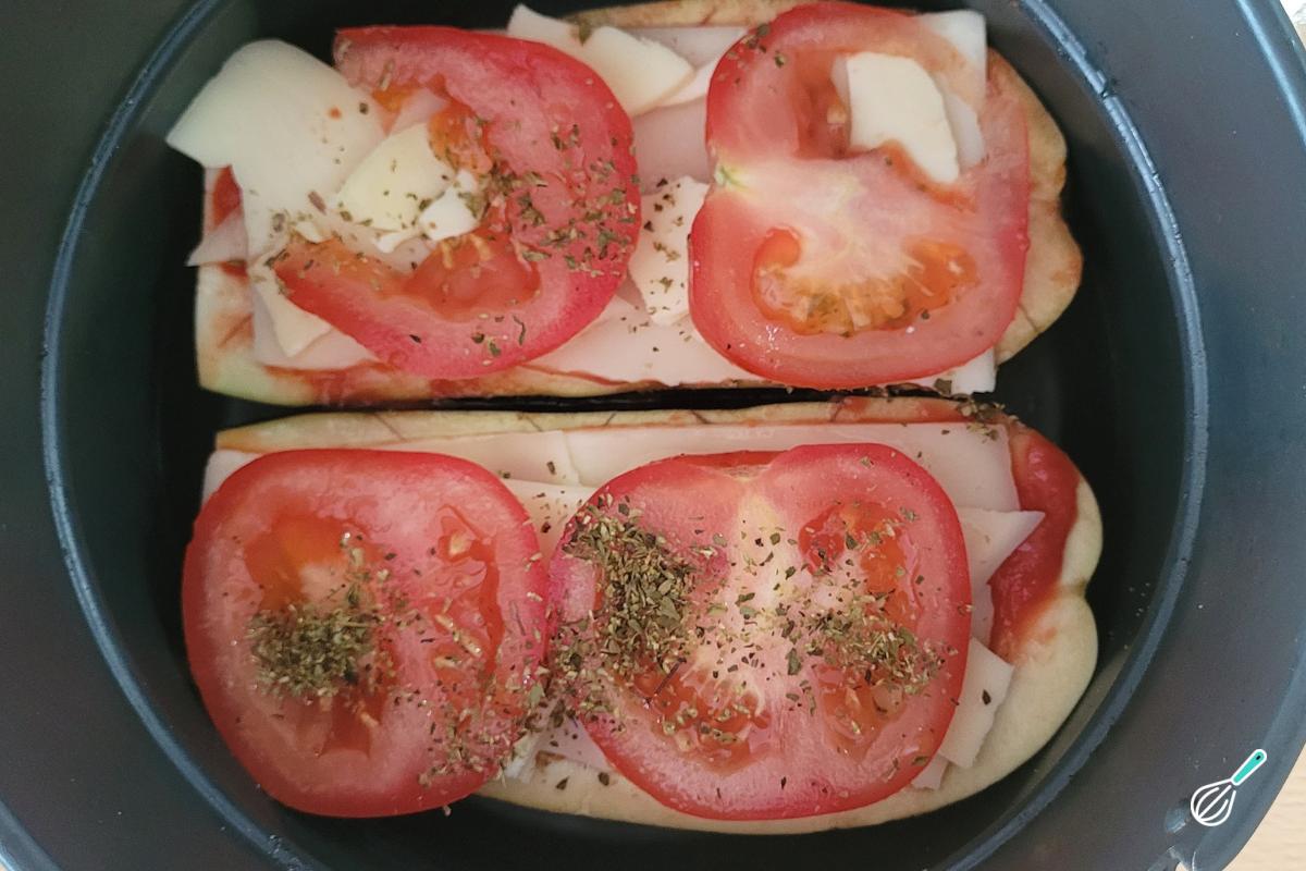 Leve as berinjelas para a airfryer sem sobrepor. Se estiver fazendo uma quantidade maior, faça em etapas. Deixe na airfryer a 200oC por 10 minutos ou até que o queijo tenha derretido. Deixe mais ou menos dourado como preferir.