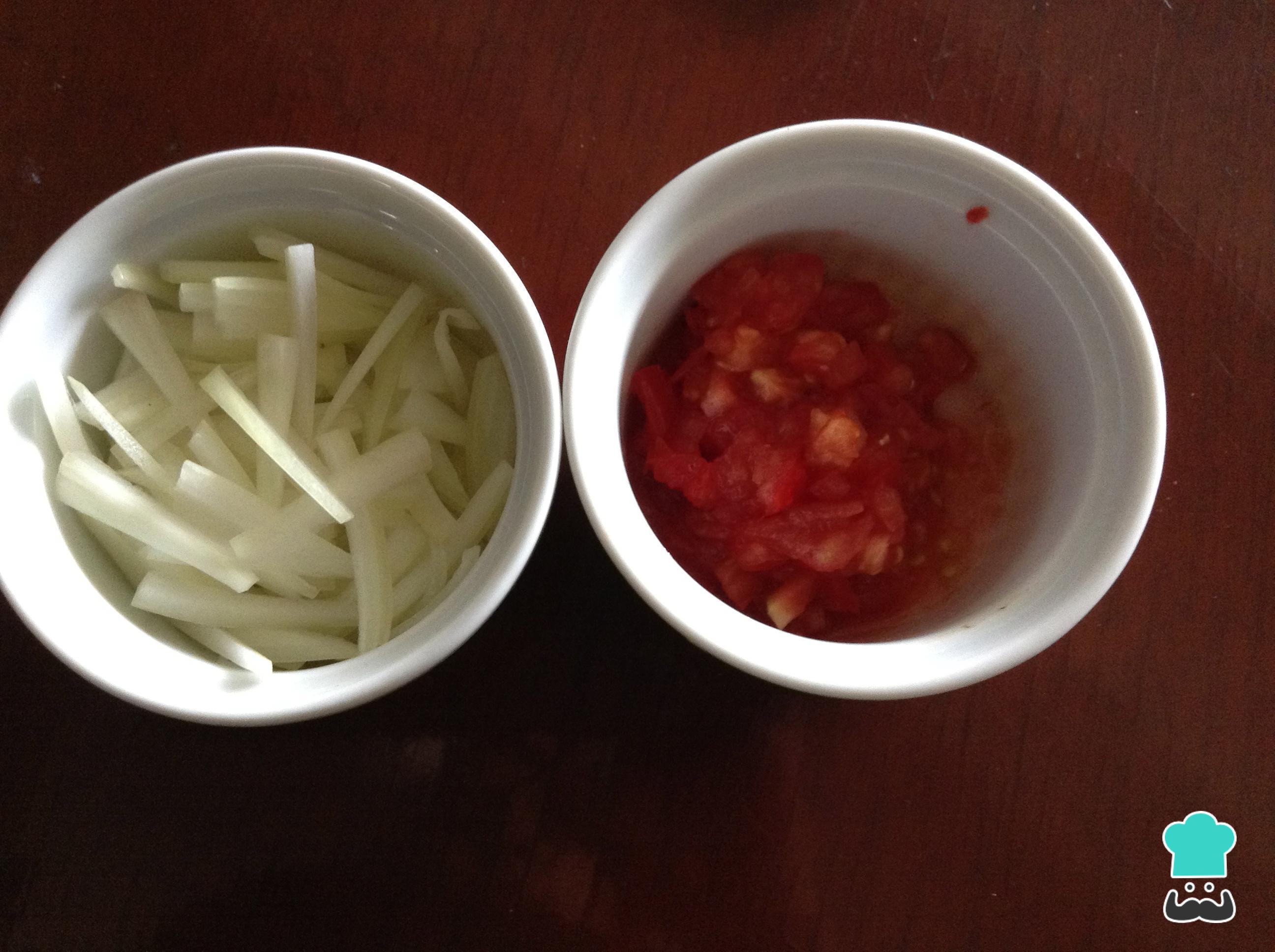 Lave o tomate e a cebola e pique ambos para fazer o molho.