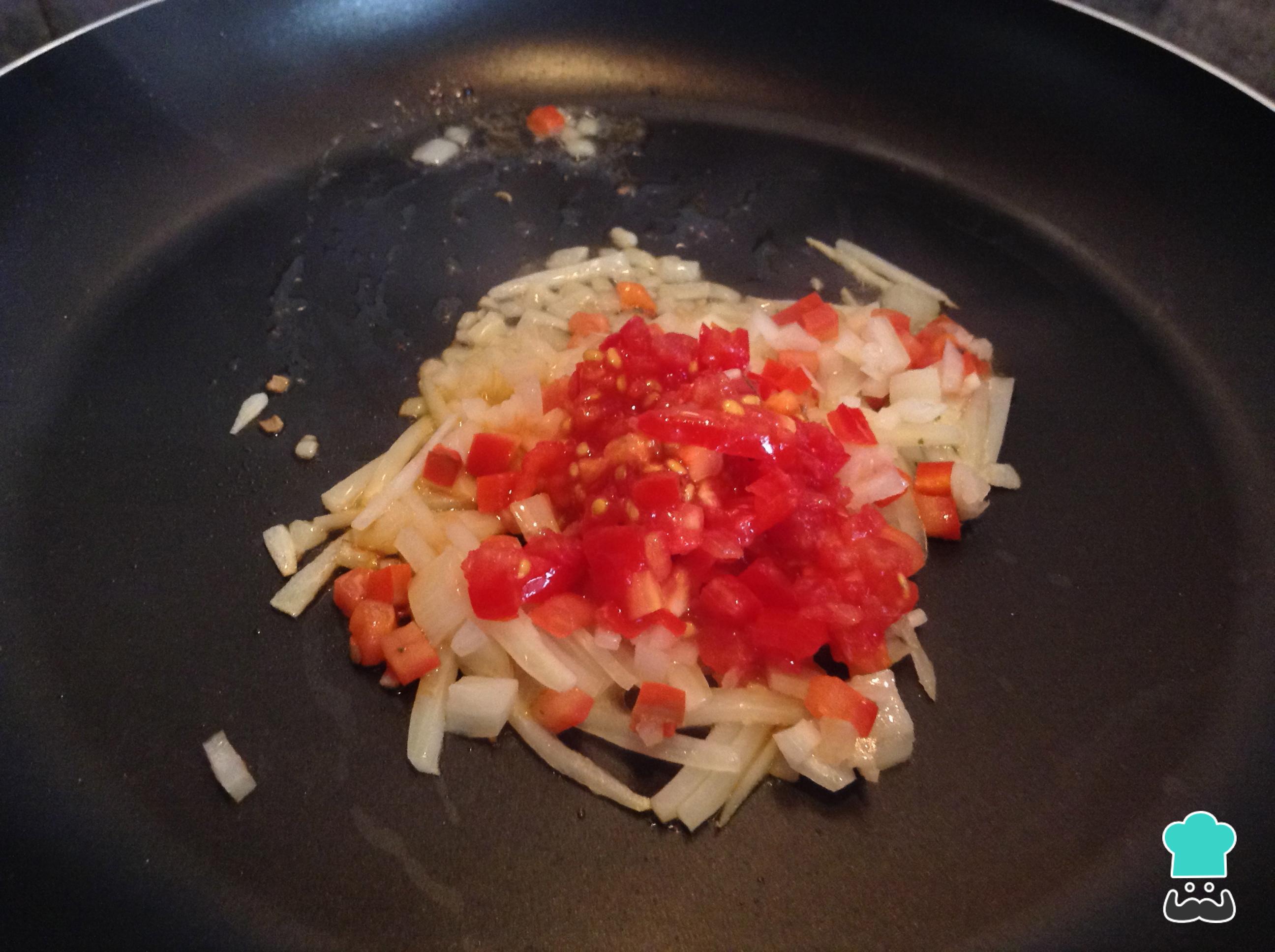 De seguida adicione o tomate e refogue por alguns minutos, até o tomate soltar seus sucos.