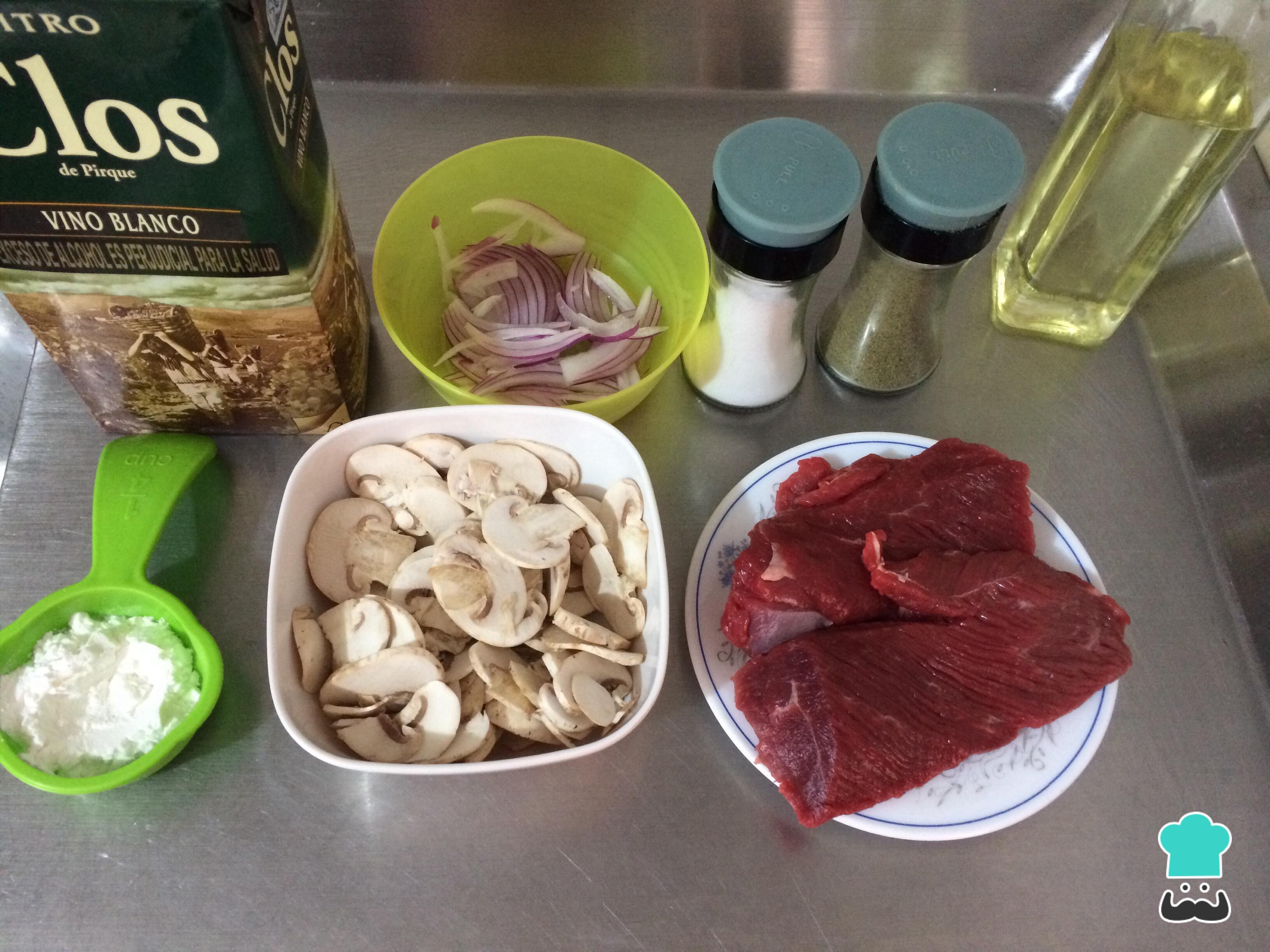 Para preparar esta receita de bife com molho de cogumelos comece por reunir os ingredientes.