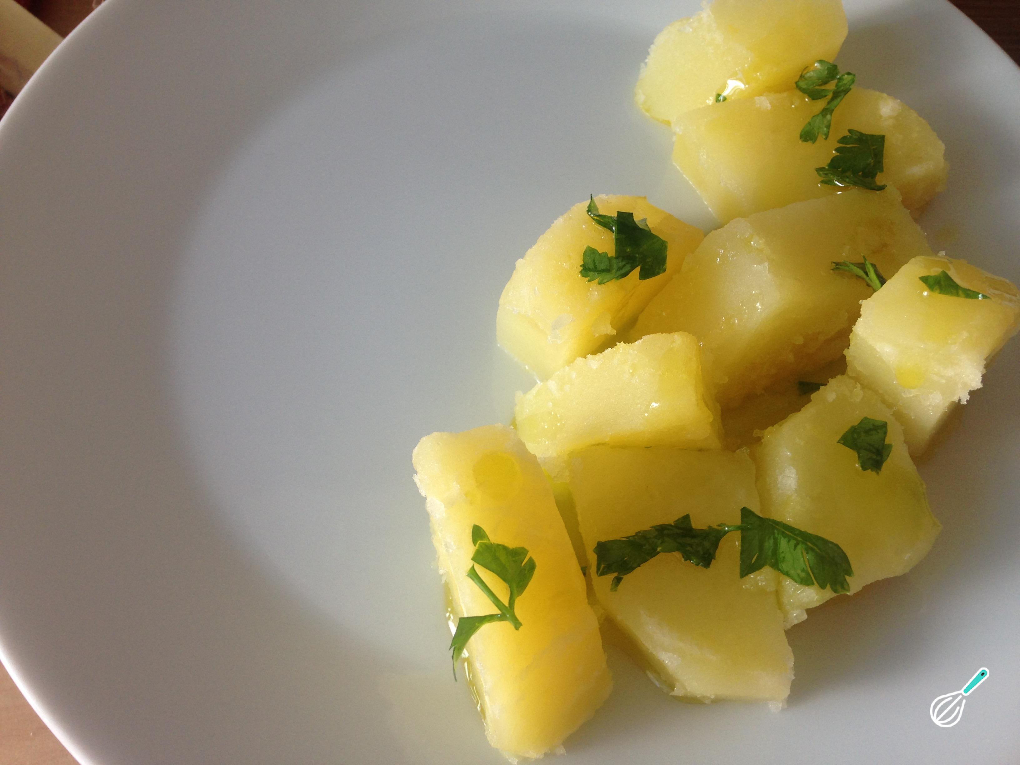 Quando estiverem macias, escorra as batatas e tempere-as com sal e a mistura de alho-salsinha. Essa será a guarnição da receita de atum.
