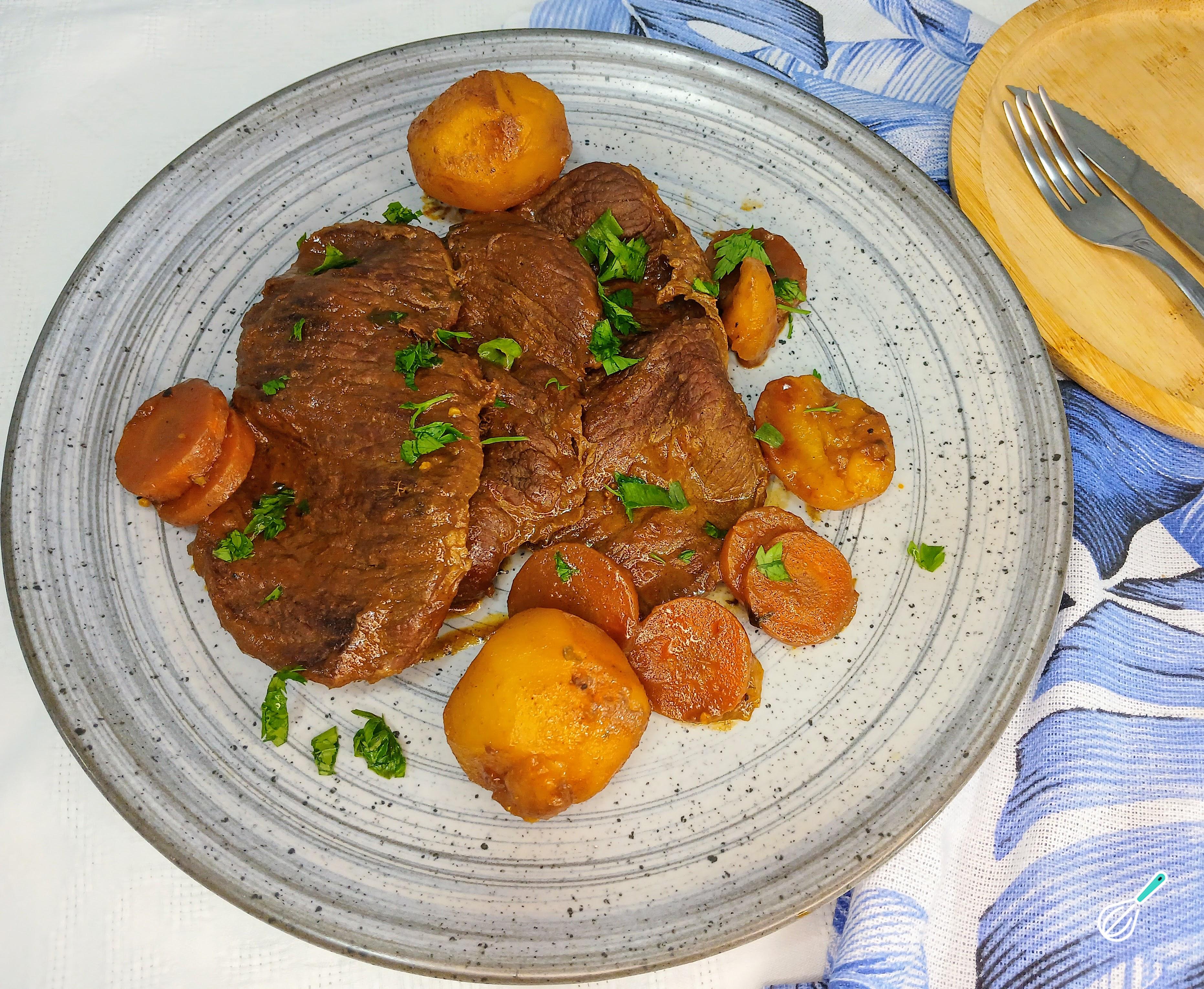 Seu bife de caçarola está pronto. Delicioso e suculento, perfeito para um almoço em família e para ser servido com um arroz branco e uma farofa. Se gostou da sugestão e vai preparar em casa, volte aqui e nos conte o que achou.