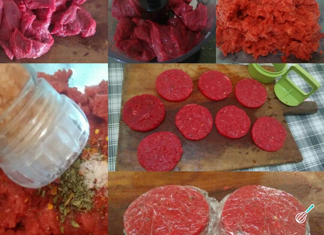 Dica: Eu usei acém para preparar meus bifes de hambúrguer, mas você pode usar outra carne da sua preferência.