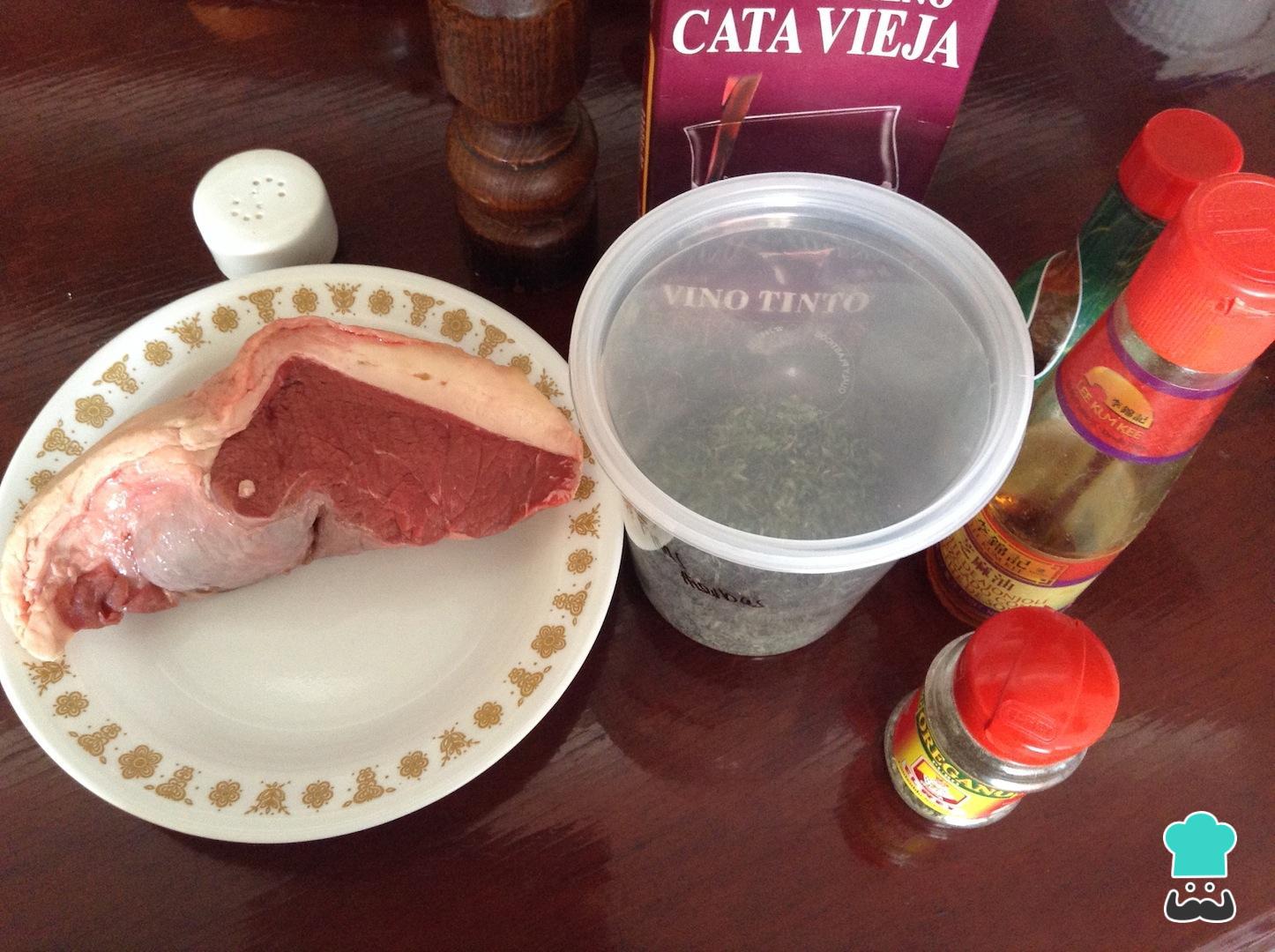 Depois de marinar, coloque o bife de chorizo em um refratário previamente untado e regue com a marinada. Se desejar, você pode selar a proteína na panela para não perder os sucos quando estiver cozinhando no forno. Asse o bife a 180 ° C por 15-20 minutos (cozimento depende do ponto da carne desejado).