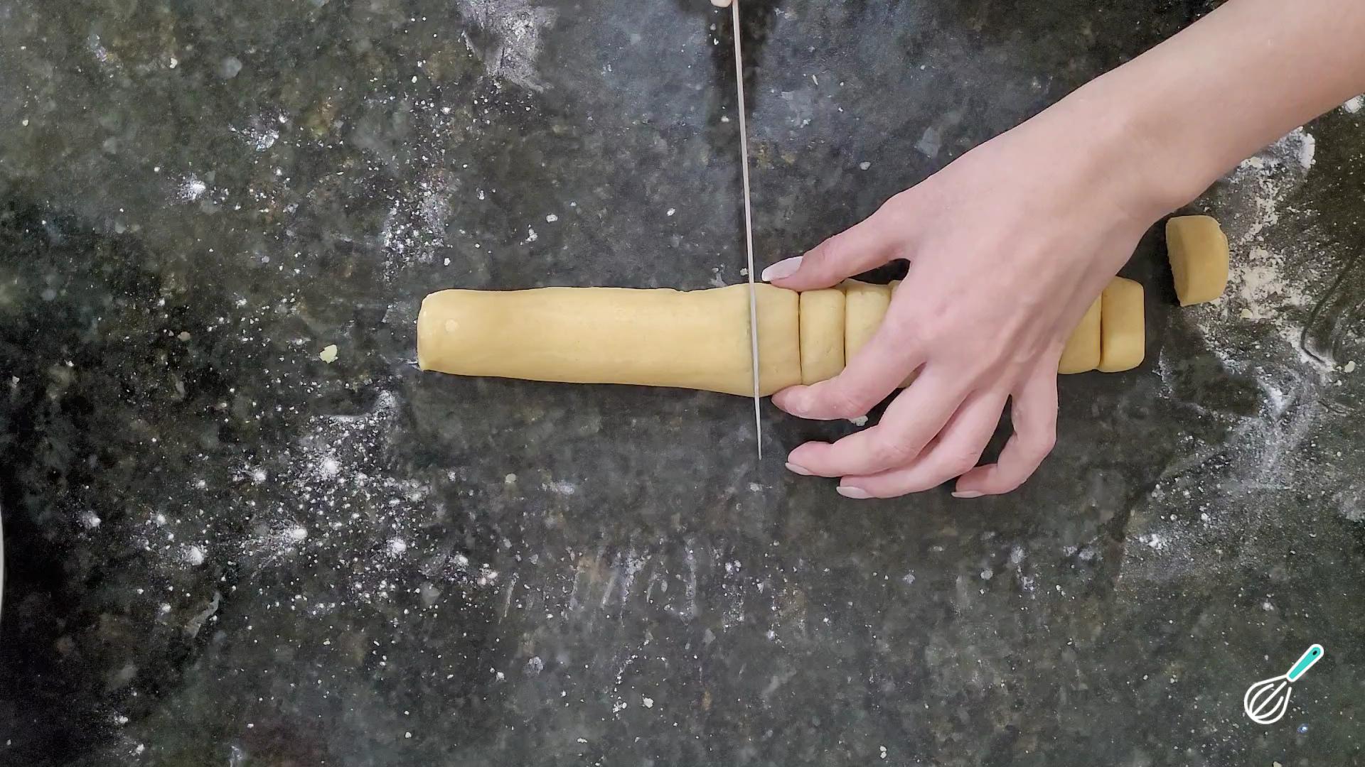 Faça um rolinho, na espessura que desejar e depois corte em rodelas.