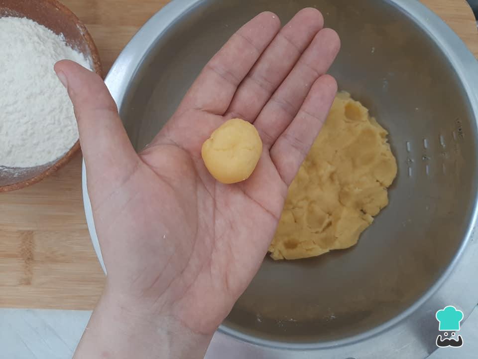 Modele os biscoitinhos na palma da mão, como mostra a foto abaixo.
