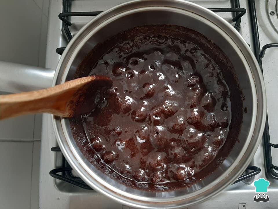 A calda estará pronta quando começar a ferver, como mostra a foto abaixo. Desligue o fogo.