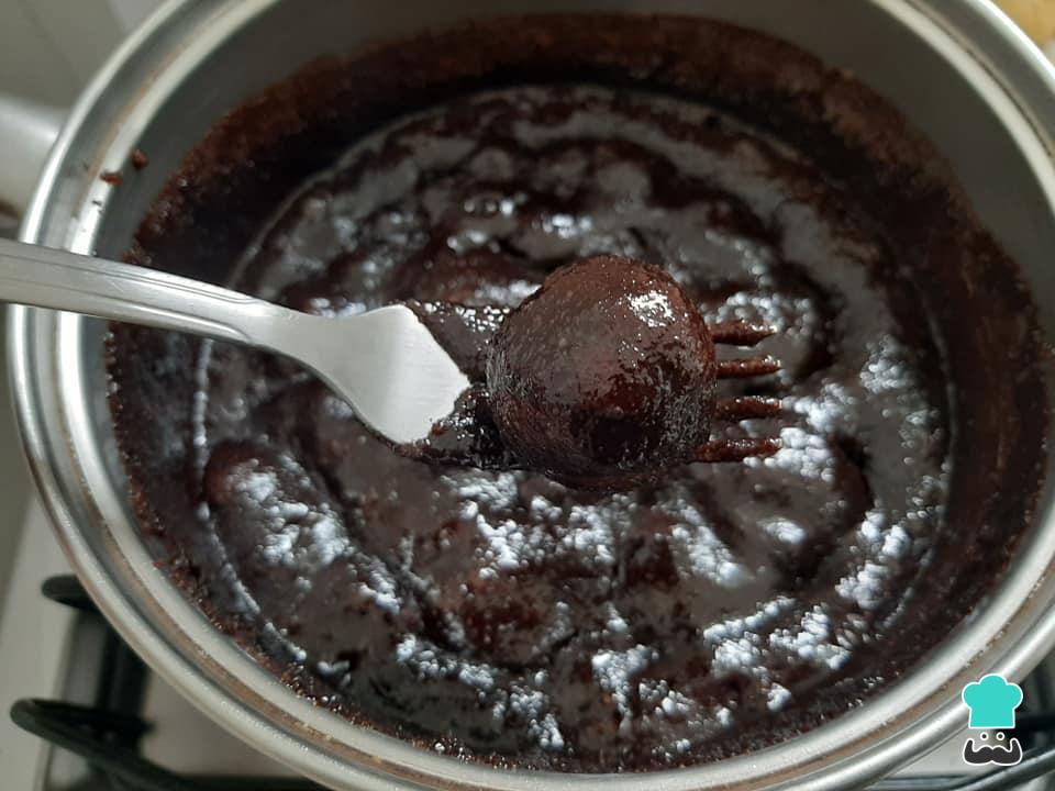 Banhe os biscoitos nessa calda ainda quente com o auxílio de um garfo e retire o excesso fazendo movimentos para cima e para baixo dentro da panela.