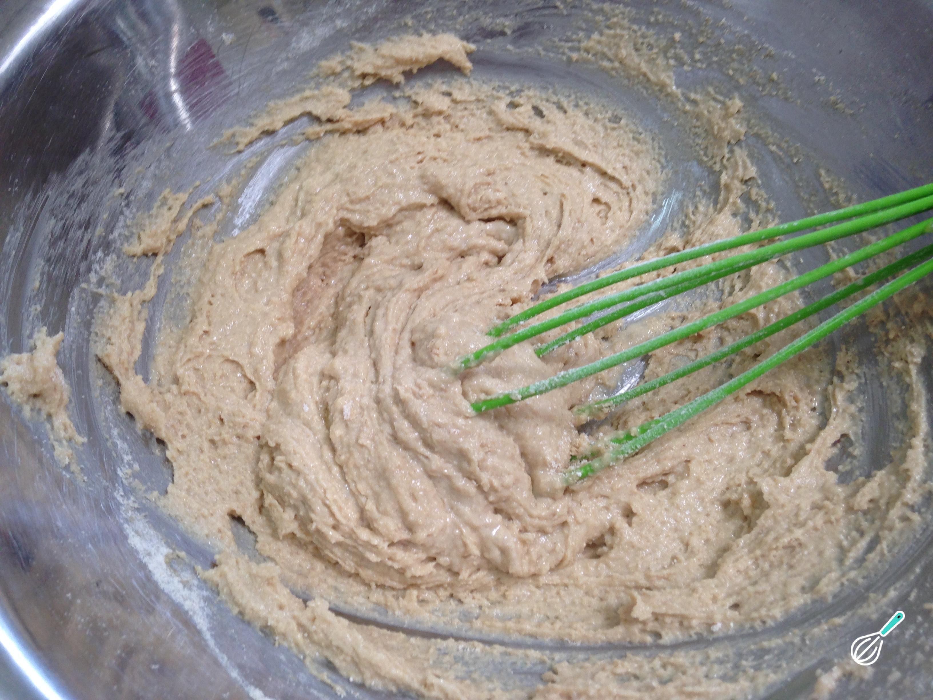 O próximo ingrediente a ser adicionado é a farinha. Misture muito bem.