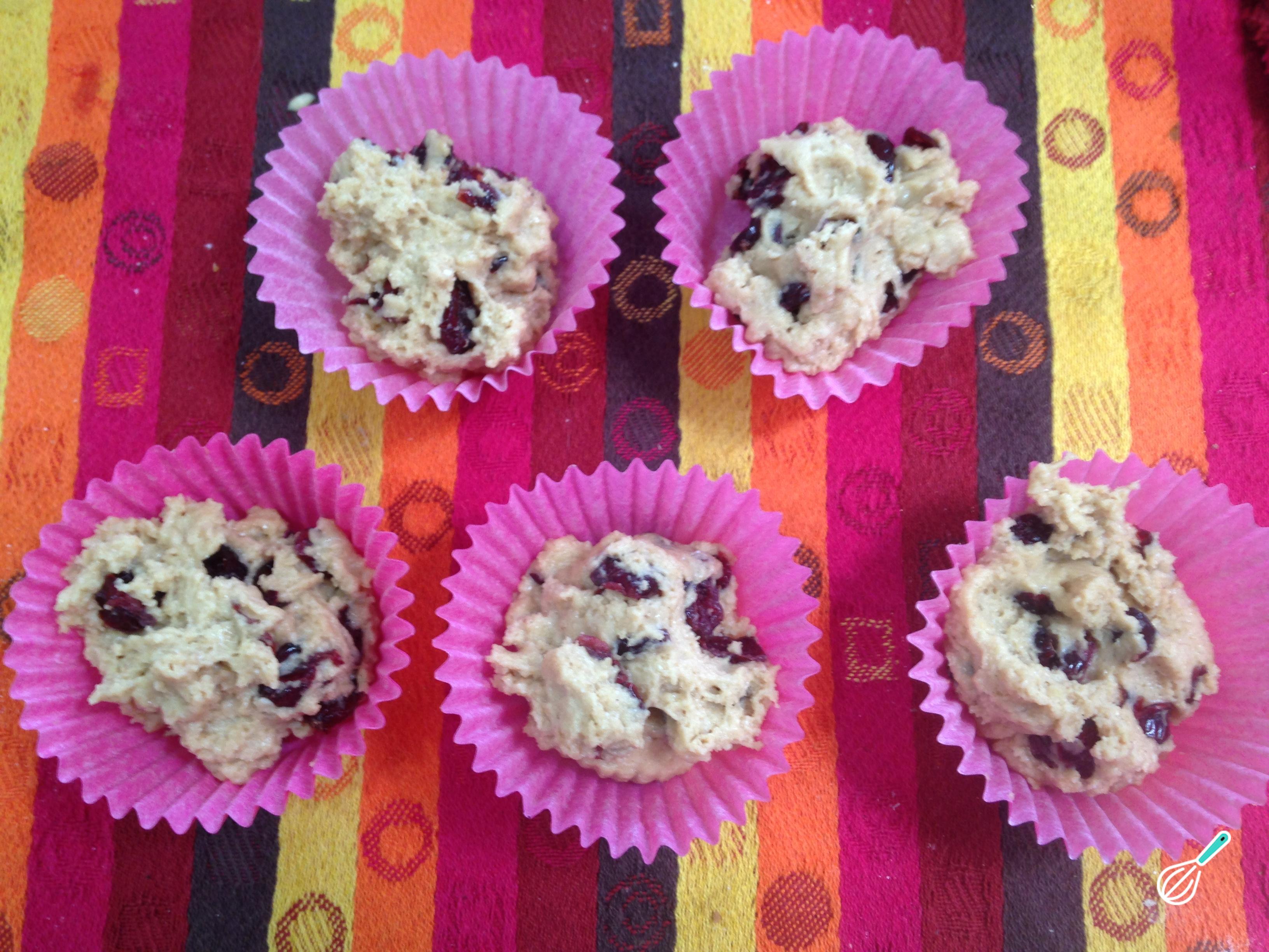 Separe porções da massa e coloque em forminhas individuais ou num tabuleiro de forno. Leve a assar no forno preaquecido a 170ºC por 20 minutos, ou até que os biscoitos fiquem dourados.