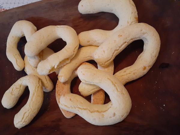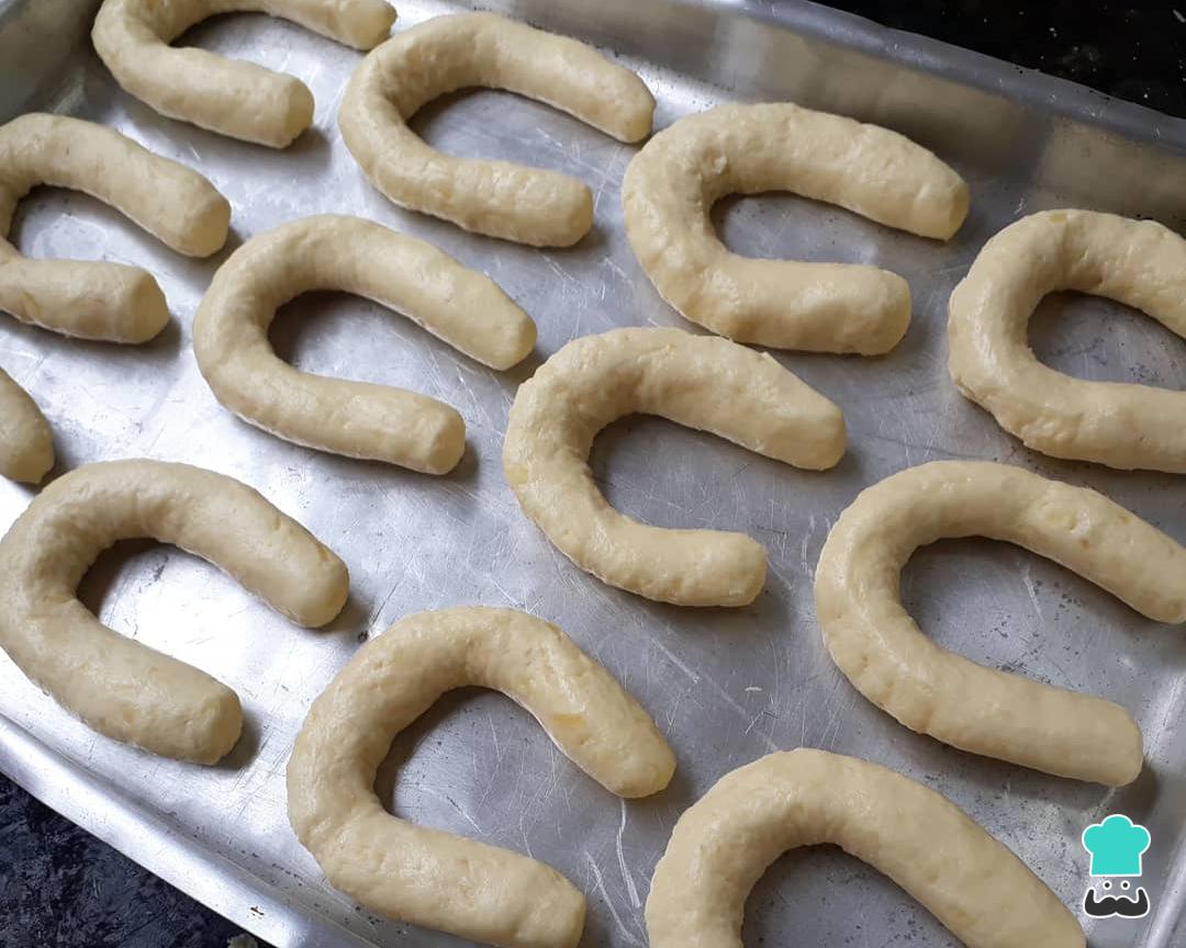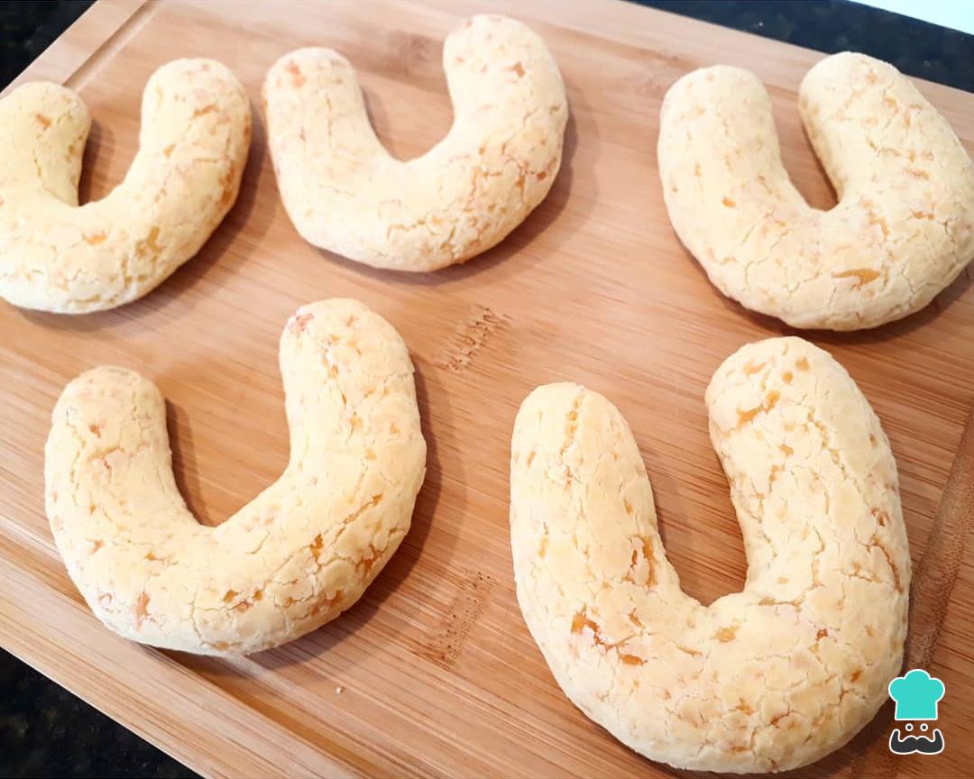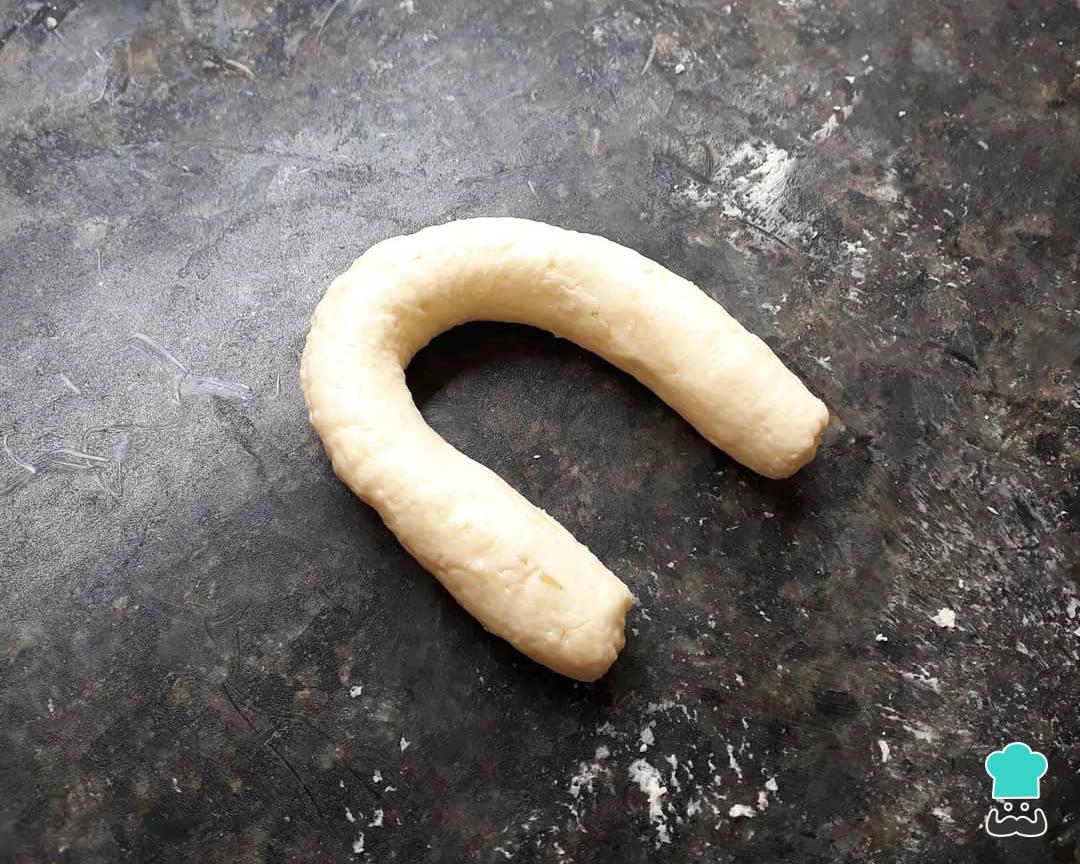 Em seguida, basta modelar esse canudo em formato de U, que é o formato tradicional da receita de chipa paraguaia.