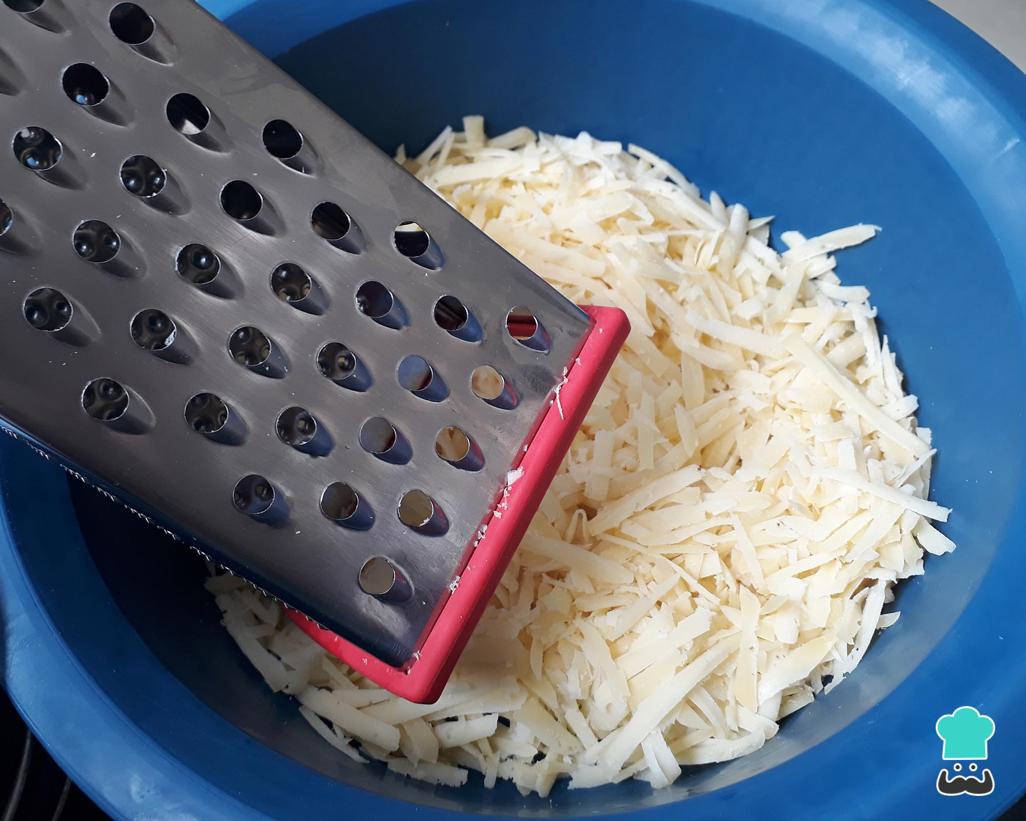 Passe o queijo meia cura por um ralador bem grosso para que, na hora de comer seu biscoito de chipa, você sinta os pedaços de queijo.