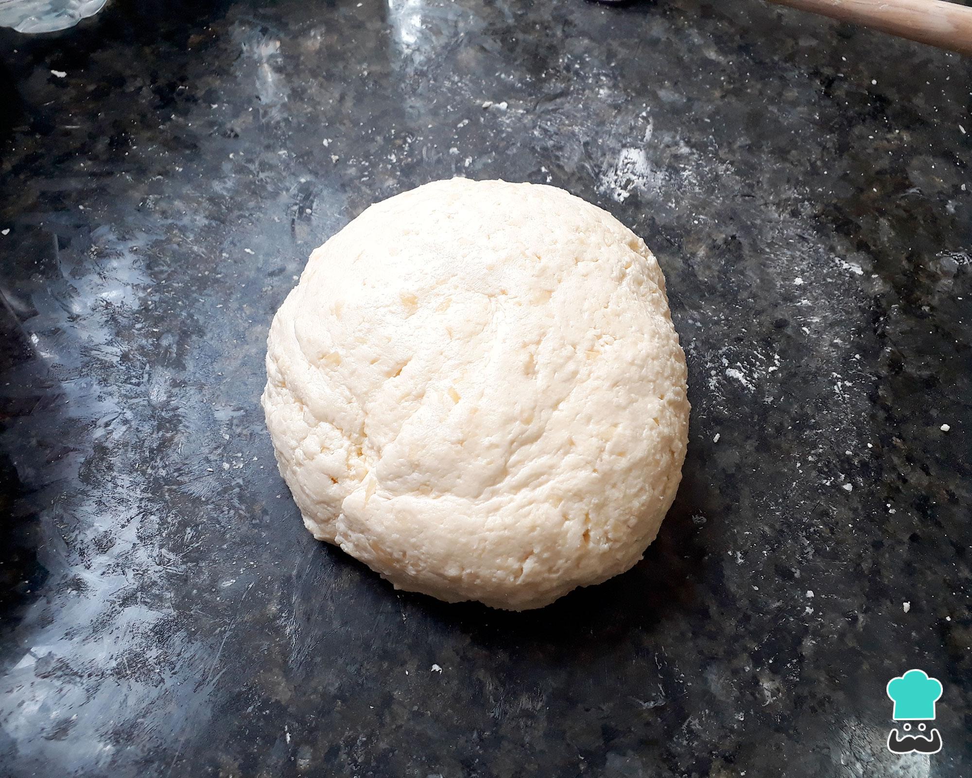 Por último, vá pingando leite bem aos pouquinhos e sovando a massa de chipa até que desgrude das mãos. Nesse momento você pode transferir a massa para uma bancada, para facilitar o trabalho.