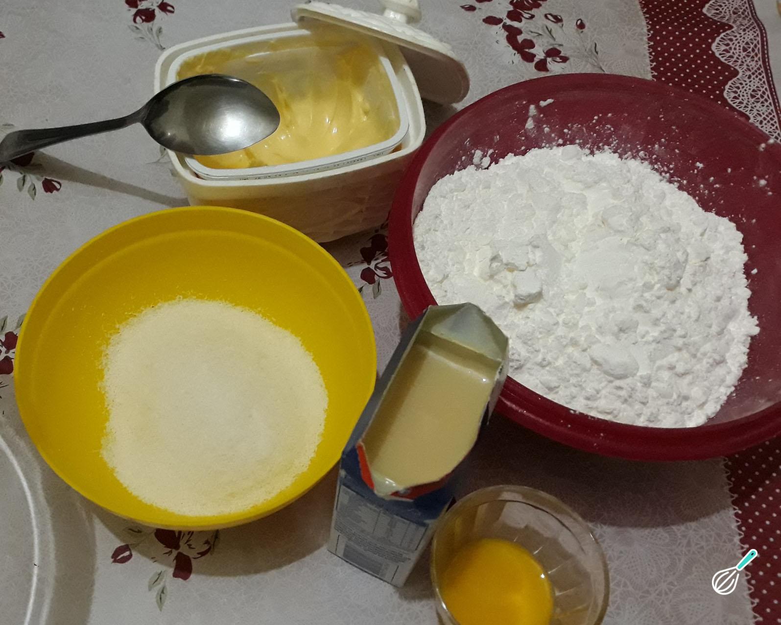 Prepare esta receita de biscoito de maizena simples com coco: unte as formas que serão utilizadas para assar os biscoitos, acenda/ligue o forno e pese e separe os ingredientes - isso facilita muito a execução da receita.