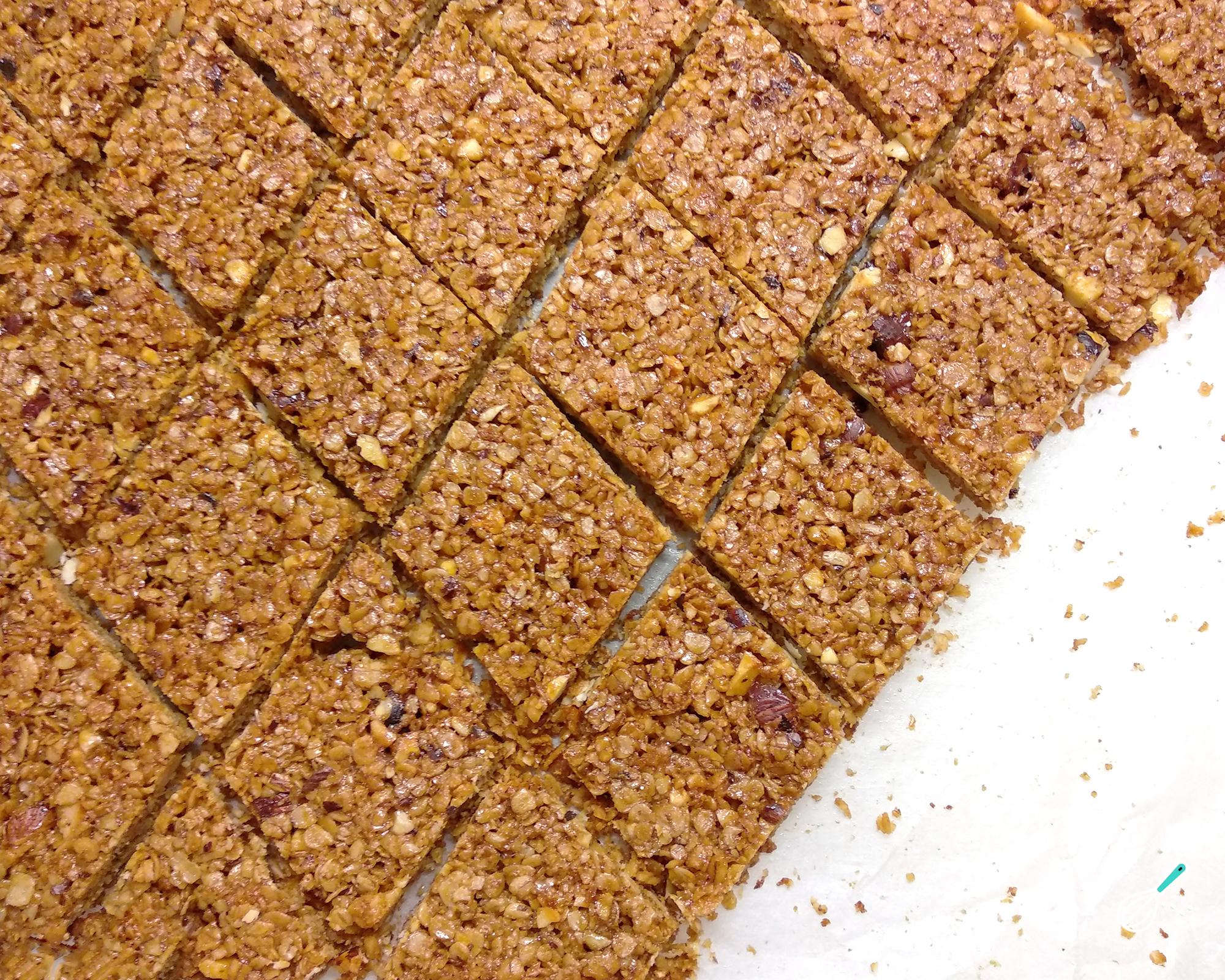 Asse no forno a 180ºC por 10-15 minutos, retire e deixe esfriar um pouco. Depois transfira para uma tábua de cozinha, com o papel manteiga junto, e corte em losangos. Deixe o biscoito de aveia e mel esfriar completamente e pode se deliciar!