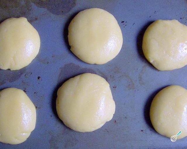 Dica: No tabuleiro mantenha uma distância de cerca de 2 cm entre cada biscoito, para evitar que grudem quando crescerem.