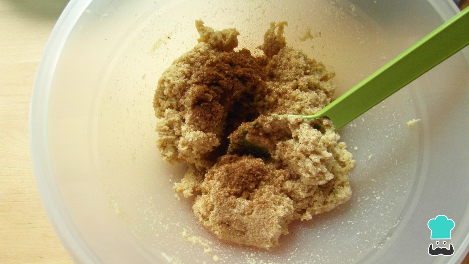 Adicione os restantes ingredientes deste biscoito sem glúten e misture tudo. Para conferir um toque de sabor diferente, você pode adicionar café solúvel ou canela.