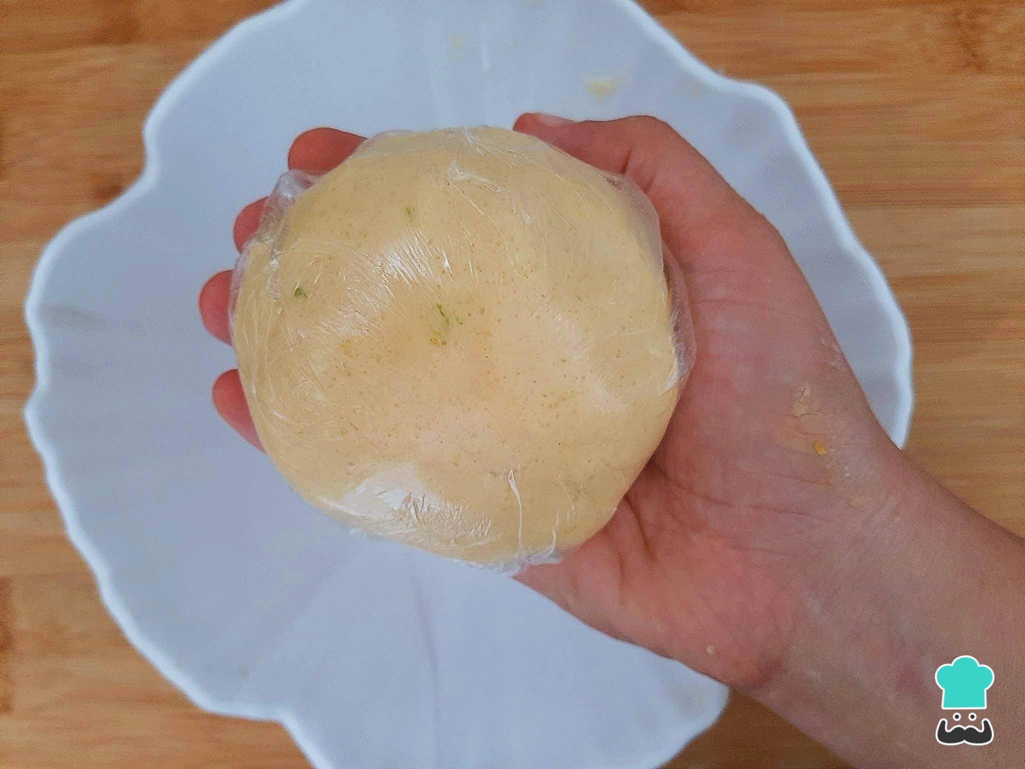 Embrulhe a massa no plástico filme e leve-a para a geladeira por cerca de 30 minutos.